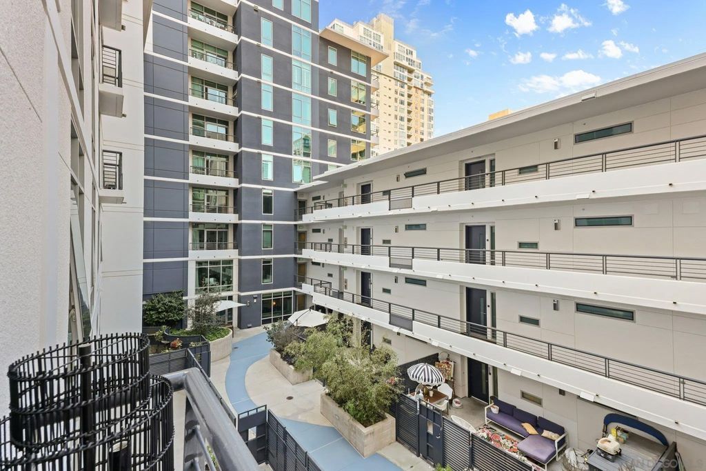 Stylish, centrally located 2-bedroom condo in the premium Acqua Vista complex! Situated in the heart of Little Italy, this home's spacious layout opens onto a sleek, upgraded and modern kitchen with contemporary finishes. Its dedicated dining area flows into the bright living space. The interior courtyard location allows for added privacy and a quieter atmosphere. The large primary bedroom includes a generous walk-in closet, while the in-unit laundry creates added convenience. Residents of Acqua Vista enjoy upscale amenities, including 24-hour security, a community attendant in the lobby, and valet parking. Recent HOA upgrades have transformed the building with new designer-selected interiors, fresh exterior paint, lush landscaping, upgraded carpeting, and curated artwork throughout. The completely renovated pool and spa area now offers fire tables, cabanas, lounge seating, and BBQ stations, all perfect for entertaining. Step outside to explore Little Italy's vibrant mix of cafes, fine dining, weekend farmers markets, and scenic waterfront. With quick access to the 5 freeway, this coveted location keeps you close to everything San Diego has to offer.