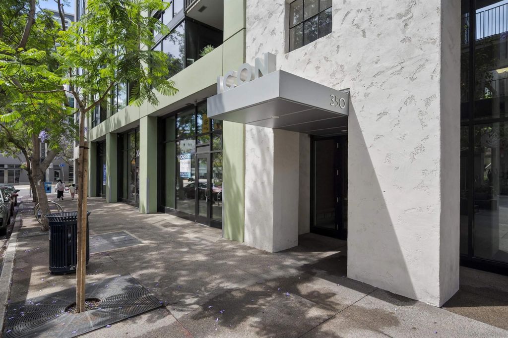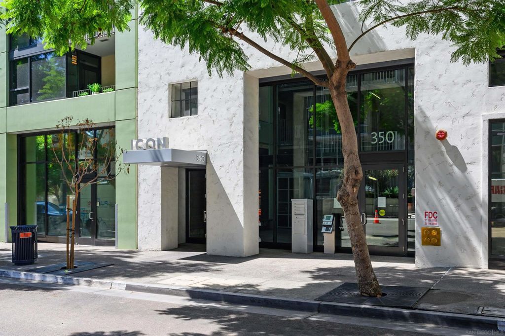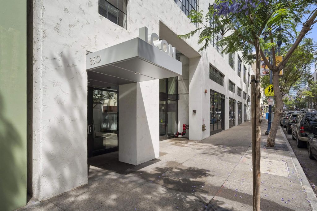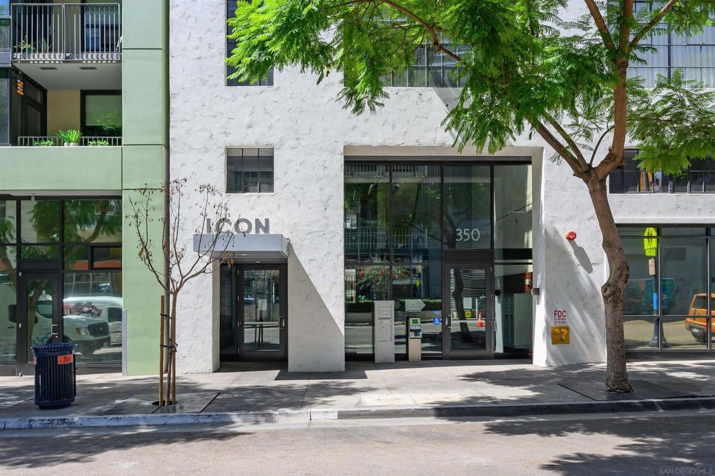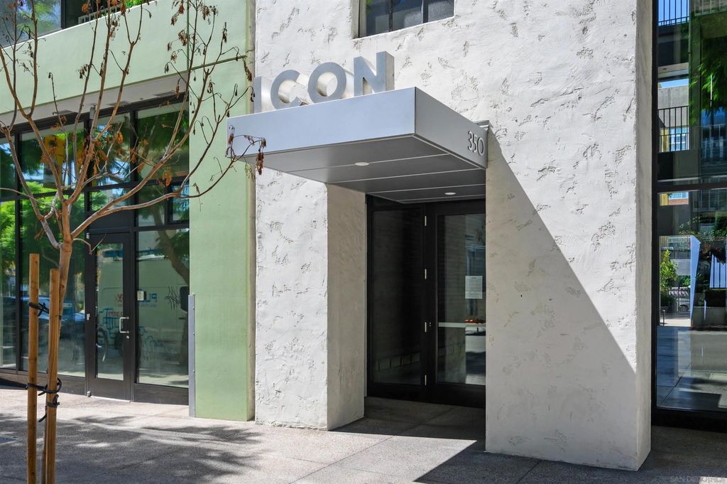 Stunning loft-style condo in the historic Carnation building at Icon combines the perfect blend of old world charm with modern luxury. Unit 341 features soaring 13 foot ceilings, beautiful white oak floors, an open kitchen with quartz counters, stainless steel appliances and built-in desk, exposed duct-work, large metal framed windows, completely renovated bathroom, walk-in closet, Nest HVAC, an underground parking space and a storage unit. Icon has many amenities including a fitness center, security, community lounge with full kitchen, movie theater room and a rooftop party deck with barbecue grills, surround sound, TV and spectacular views of Petco Park, San Diego Bay, Coronado and the downtown San Diego skyline.