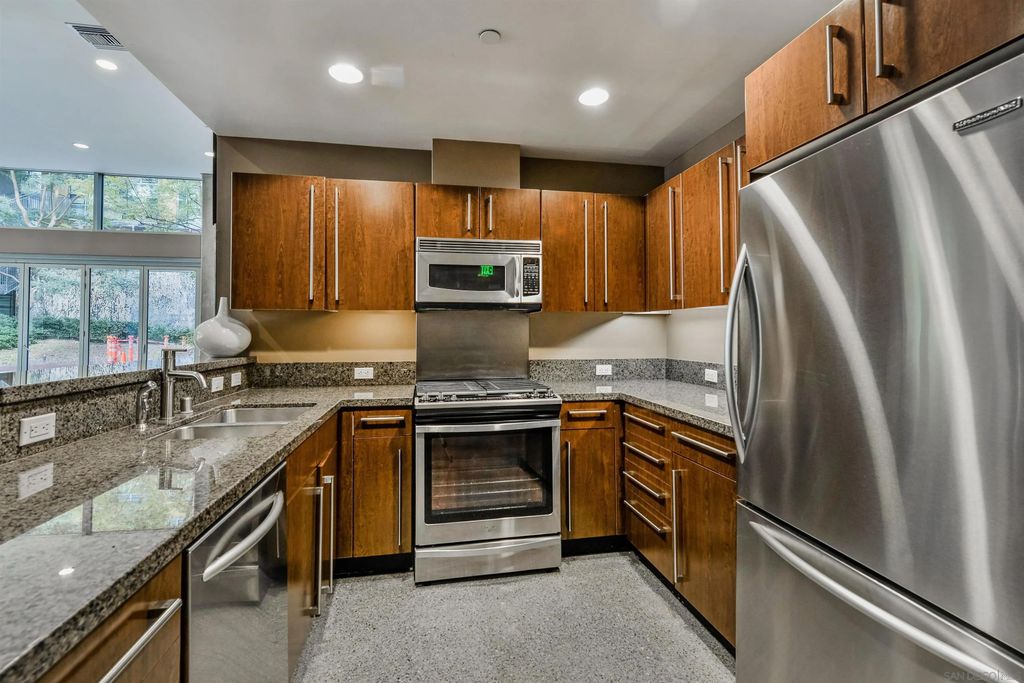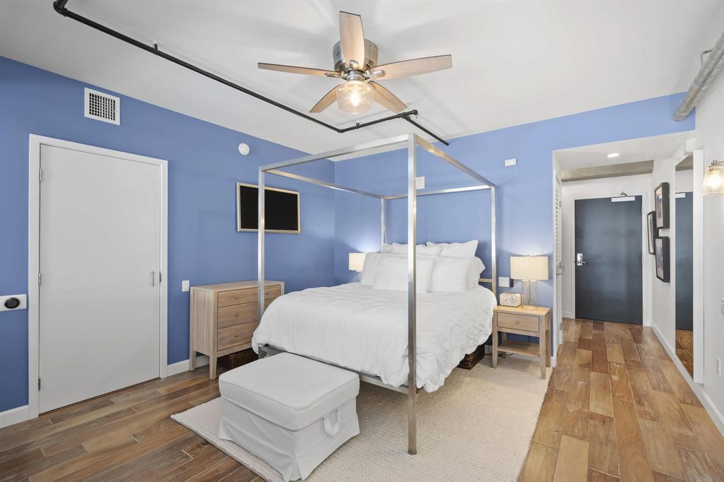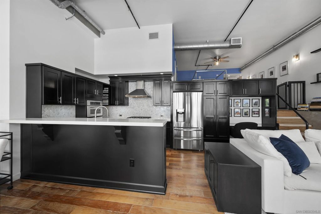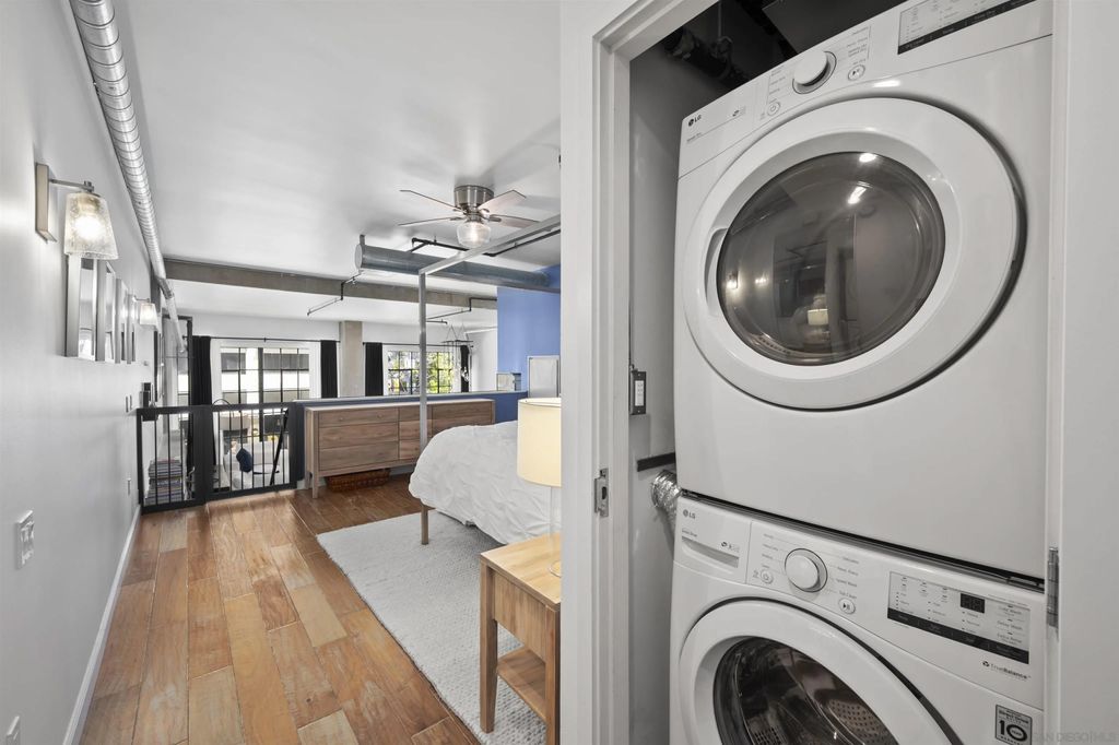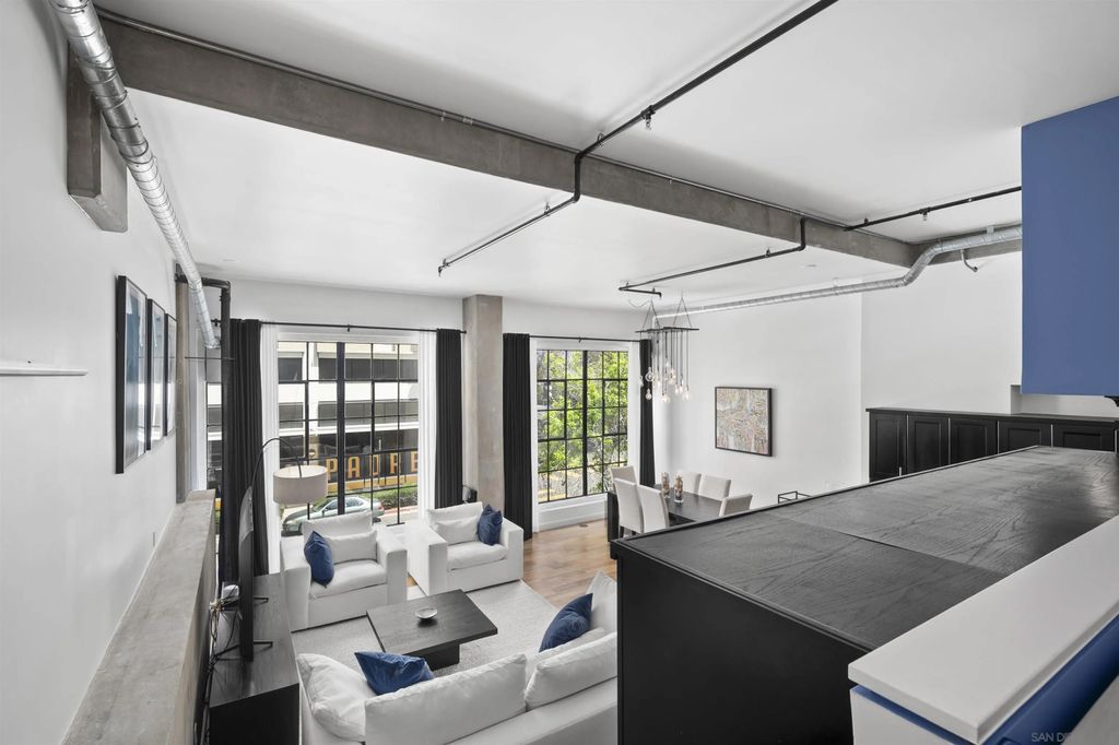 Stunning loft-style condo in the historic Carnation building at Icon combines the perfect blend of old world charm with modern luxury. Unit 341 features soaring 13 foot ceilings, beautiful white oak floors, an open kitchen with quartz counters, stainless steel appliances and built-in desk, exposed duct-work, large metal framed windows, completely renovated bathroom, walk-in closet, Nest HVAC, an underground parking space and a storage unit. Icon has many amenities including a fitness center, security, community lounge with full kitchen, movie theater room and a rooftop party deck with barbecue grills, surround sound, TV and spectacular views of Petco Park, San Diego Bay, Coronado and the downtown San Diego skyline.