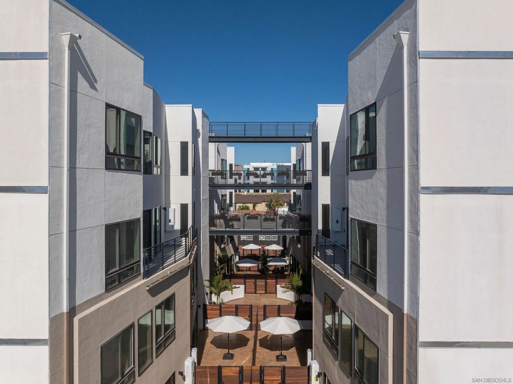Rendezvous presents a rare opportunity to purchase new construction in North Park, one of San Diego's most sought-after urban communities. This contemporary 2-bed, 2.5-bath, two-story condominium offers an exceptional layout with dual primary bedrooms, each featuring walk-in closets and ensuite baths with dual sinks. A rare 500 sq. ft. private outdoor courtyard extends the living space, while added north-facing windows in the dining room, primary bedroom, and primary bathroom enhance natural light throughout. The home features 10-ft ceilings, central heat and air, tankless water heating, and a modern open-concept design. Residents enjoy a secure building with fob/key access, two assigned parking spaces in the subterranean garage, and a pet-friendly community set within an exciting, highly walkable neighborhood close to dining, shopping, and everyday conveniences. Discover Rendezvous, an exclusive collection of 35 newly built condominium homes in the heart of North Park. Situated at the center of one of San Diego's most vibrant lifestyle districts, residents are steps from dining, shopping, and cultural amenities. Rendezvous offers a refined blend of contemporary design and timeless appeal, featuring thoughtfully crafted floor plans and quality architectural details. The community includes single-level two-bedroom, two-bath condominiums, as well as two-story townhomes with two bedrooms and two-and-a-half baths, ranging from approximately 1,200 to 1,500 sq. ft. Each residence includes two parking spaces in a secure, gated subterranean garage with direct lobby access. Interiors feature ten-foot ceilings, expansive windows, and sliding doors that enhance natural light. Kitchens are appointed with custom cabinetry, quartz countertops, central waterfall islands, and stainless-steel appliances. Bathrooms include custom cabinets, quartz countertops, and satin brass fixtures. Homes offer stackable laundry closets or dedicated laundry rooms, and most include private balconies or terraces. Pre-wiring for security systems is also included. Rendezvous presents a rare opportunity to purchase new construction in North Park, one of San Diego's most sought-after urban communities.