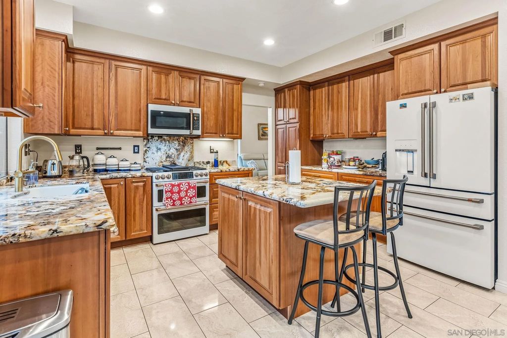 Exquisite two-story residence offering 4 bedrooms and 3 bathrooms with a bright, open floor plan and soaring ceilings. Abundant natural light throughout enhances the home's refined yet inviting design. Features include wood flooring, granite countertops with granite backsplash, and an open-concept kitchen with modern appliances and walk-in pantry, flowing seamlessly into the family room with fireplace"”ideal for entertaining. A full bedroom and bathroom on the main level provides flexibility for guests, multigenerational living, or a home office. All bathrooms have been fully remodeled with elegant tile work. The upstairs primary suite offers tranquil treetop views and a spa-inspired en-suite with natural stone walk-in shower, oversized soaking tub, dual sinks, ample storage, and walk-in closet with organizers. Two additional bedrooms share a dual-sink bath. Private backyard with no neighbors behind, featuring low-maintenance turf, fruit trees, and 30-ft enclosed dog run. Near Libby Lake Park and approx. 8 miles to Oceanside Pier and Beach.