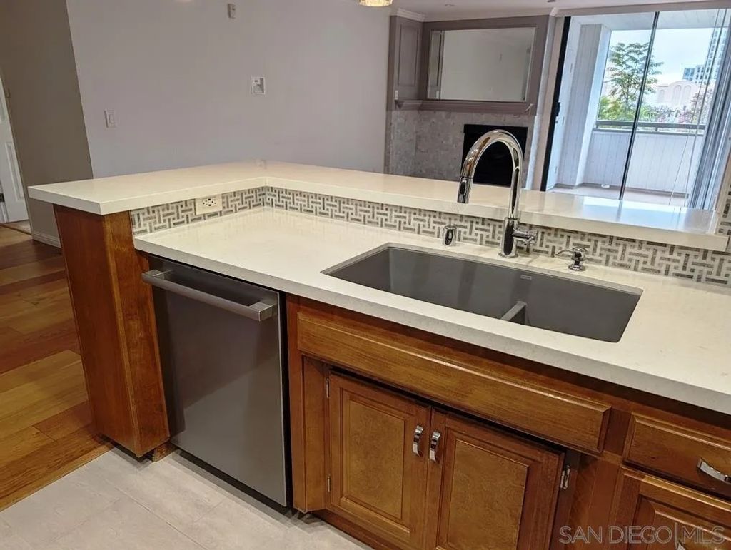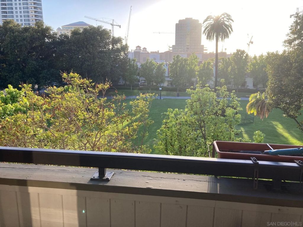 Enjoy downtown living at Marina Park. This great location in the Marina District is Just a short walk to the Embarcadero, Seaport Village, Gas lamp, Little Italy, and Petco Park! Just a short drive to beaches, Coronado and North County. This highly upgraded 2bd/2ba home offers you a rare opportunity to be right over Pantoja Park! Enjoy the views of the city and the serenity of the park. Nicely remodeled Large 2bd/ 2ba split master style unit boasts hardwood flooring, newer countertops, a gas fireplace, and updated kitchen and baths! This West facing unit has a direct view into Pantoja park and is fully equipped with all appliances. 2 prime side by side parking spaces and 24 hour on site security. Come see for yourself this golden opportunity to own downtown!