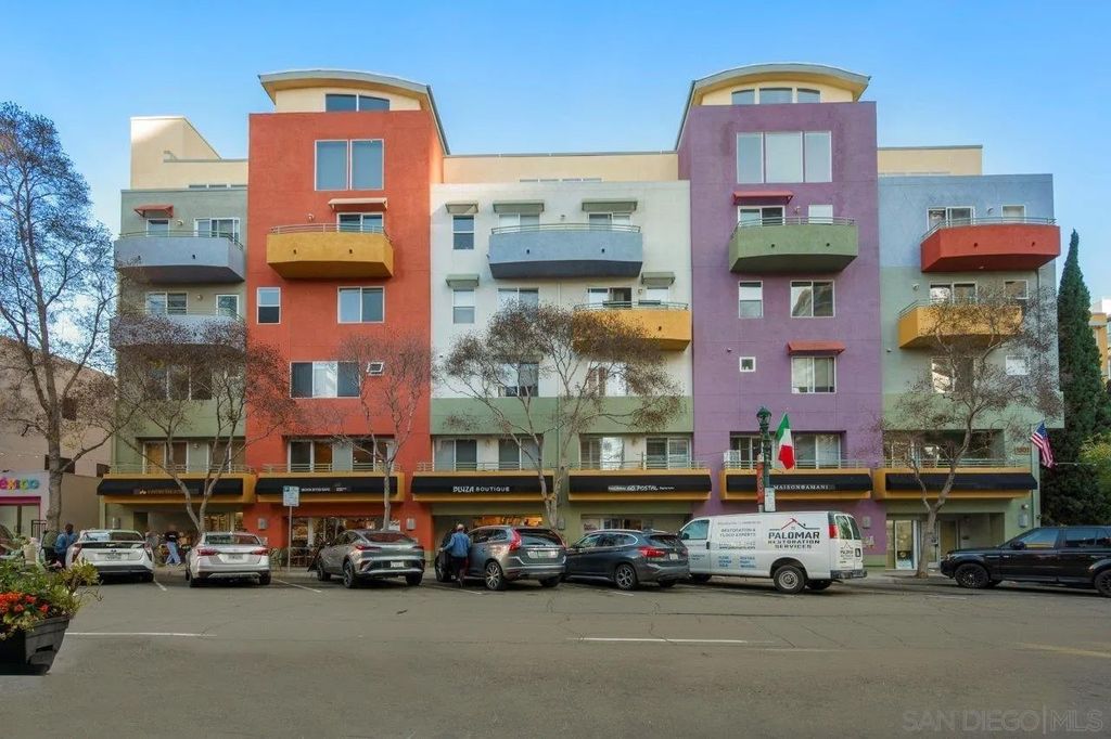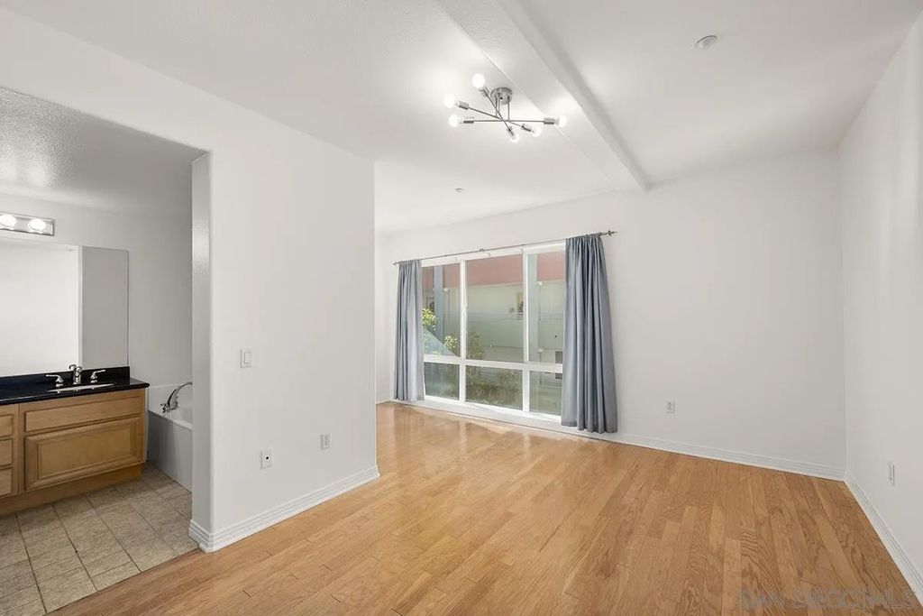 Village Walk #508 is a rare 1-bedroom plus den (optional second bedroom/office/retreat) that offers over 1,200 square feet of well-designed living space in the heart of Little Italy, one of Downtown San Diego's most vibrant and walkable neighborhoods. The home features an open-concept layout with a spacious living area, hardwood floors, fresh interior paint, and a private balcony capturing the energy of city living. The kitchen includes stainless appliances, granite countertops, recessed lighting, a pantry, and ample storage. The primary bedroom overlooks the interior courtyard and offers a peaceful retreat with a spacious walk-in closet. The bathroom is complete with a dual vanity, soaking tub, and separate step-in shower. Additional highlights include arched doorways, in-unit laundry, very convenient elevator access, a storage locker, and a secured parking space. An exceptional offering in Little Italy, surrounded by top-tier dining, the waterfront, and the energy that defines Downtown San Diego living. Village Walk is a vibrant mid-rise community ideally situated in the heart of Little Italy, just steps from an exceptional collection of shops, cafés, art galleries, and over 70 award-winning restaurants and patio dining destinations along charming India Street. Little Italy's walkable streets lead to weekly farmers markets, outdoor plazas, parks, and waterfront access that all offer a true urban-village lifestyle right at your doorstep. Residents enjoy a beautifully designed central courtyard with a tranquil fountain and comfortable seating areas, perfect for relaxing and socializing. Premium community amenities include a fully equipped fitness center, inviting resident clubroom, and secure bike storage in the garage. With its unbeatable location and thoughtfully curated spaces, Village Walk delivers both convenience and community in one of San Diego's most desirable Downtown neighborhoods.