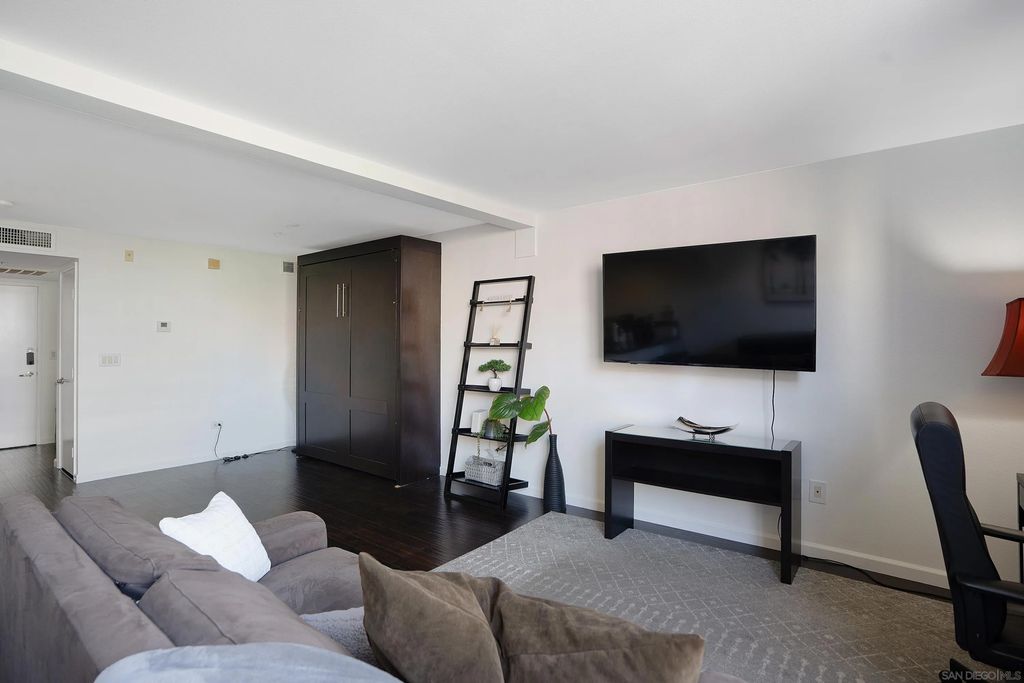 Stylish downtown studio with stunning skyline views in an unbeatable location. This smartly designed home features granite countertops, stainless steel appliances, a new dishwasher, hardwood floors, a spacious kitchen, in-unit washer/dryer, updated HVAC, a large walk-in closet, and a custom Murphy bed for seamless living. Enjoy resort-style amenities including a fitness center, conference room, landscaped courtyard, and rooftop terrace with BBQs. Ideally located across from Ralphs and just steps to the Gaslamp Quarter, Petco Park, and San Diego Bay. Atria centrally located in the highly sought after Marina District. Completed in 2002, Atria features 149 residences in two 4-story mid-rise buildings which include 101 Market Street and 120 Island Avenue These ultimate addresses offers easy access to the best the city has to offer, including Petco Park, Seaport Village, and the Gaslamp District for entertainment, dining, and shopping. Atria amenities include contemporary lobby, Secure Gated Building, state-of-the-art fitness center, meeting room, two rooftop lounges with BBQ's, gated underground parking, bike storage and security, and on-site property manager.