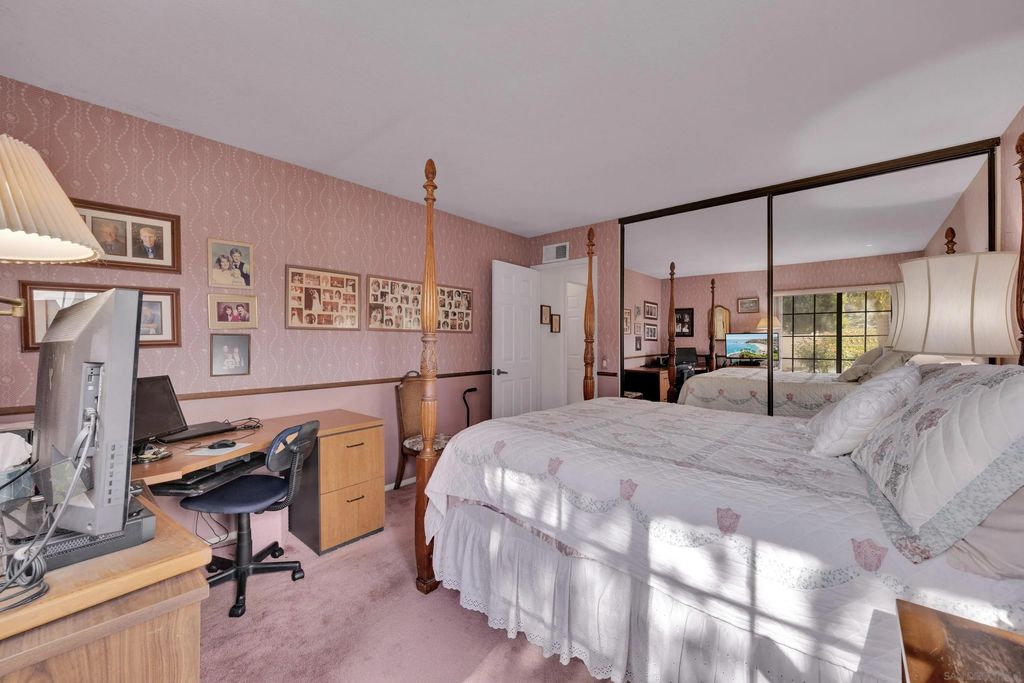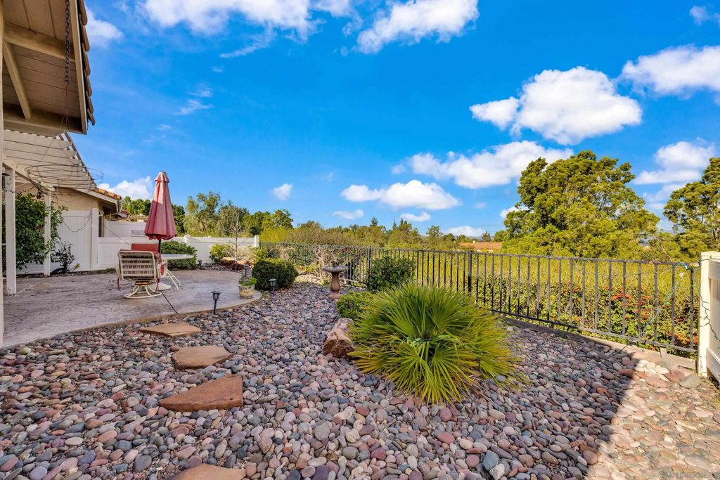 Welcome to this charming end-of-cul-de-sac home offering privacy, comfort, and panoramic views. This well-designed residence features 2 bedrooms and 2 full bathrooms, complemented by vaulted ceilings that create an open, airy feel throughout the living spaces. The inviting living room includes a cozy fireplace, perfect for relaxing evenings at home. A dedicated laundry room adds everyday convenience, while the attached 2-car garage provides secure parking and additional storage. Step outside to a private yard ideal for enjoying peaceful mornings or sunsets. Guest parking is conveniently available nearby. Residents also enjoy access to a local clubhouse, pool, and community amenities, enhancing both lifestyle and value. Ideally located with a quiet setting yet close to shopping, dining, and commuter routes, this home offers a perfect blend of tranquility and accessibility. A wonderful opportunity to enjoy comfortable living in a desirable San Diego community.