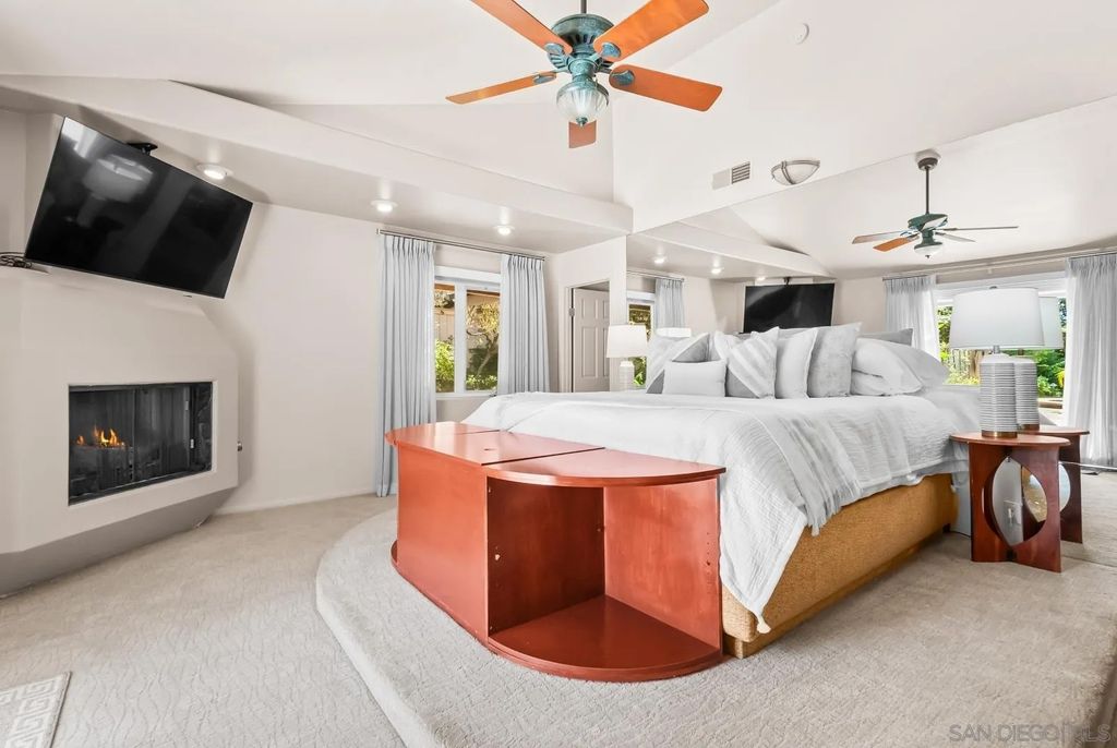 Set on a flat 0.49-acre corner parcel in the coveted La Jolla Alta North neighborhood, this single-level residence is surrounded by majestic, park-like grounds that create a sense of serenity and seclusion. Vaulted ceilings and numerous skylights bathe the interior in natural light, while stackable glass doors create a seamless connection to the lush backyard"”complete with a sprawling pool, spa, and cabana ideal for lounging. Designed for effortless entertaining, the living areas showcase Canadian black walnut floors, two of the home's three fireplaces, and easy access to the outdoors. The spacious primary retreat, privately situated away from the secondary bedrooms, features a remodeled bath and dual walk-in closets, including an extraordinary 18'x17' dressing room. The cook's kitchen with sleek cabinetry and stainless appliances connects to a charming breakfast nook with built-in banquette seating. Additional highlights include solar, a 3-car garage, and a semi-circular driveway that ensures effortless parking. A rare blend of space, privacy, and indoor-outdoor living in a coveted La Jolla locale.