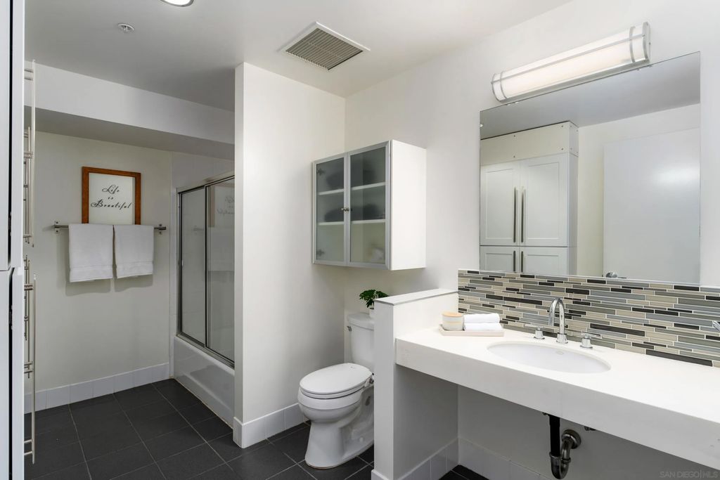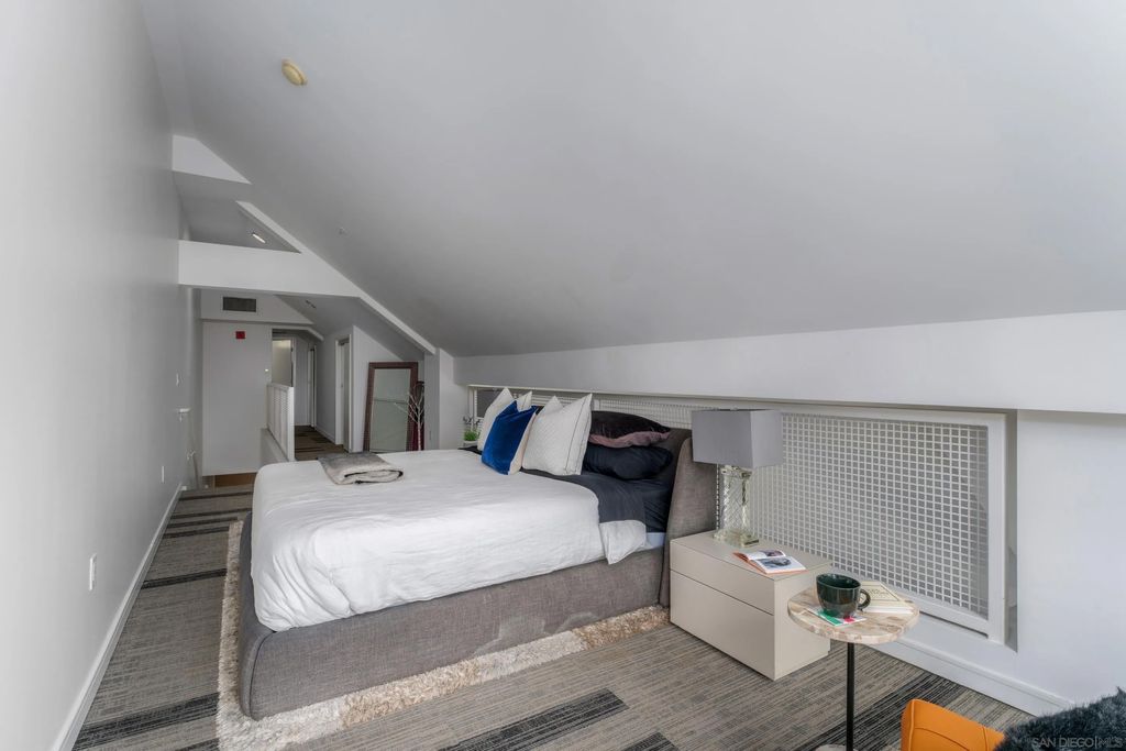 Rare opportunity to own a top-floor, corner residence with an extra large private exterior patio in the heart of Little Italy. This highly coveted two-story condo lives like a townhome, offering one of the largest and most chic floor plans in the building - with striking architectural design and an abundance of natural light throughout. The primary suite occupies the entire upper level, creating a true retreat complete with its own full bathroom, while the second full bathroom downstairs adds functionality and flexibility. High-volume ceilings, expansive windows, and a thoughtful layout enhance the sense of space and openness, while city and ocean views provide an ever-changing urban backdrop. Additional highlights include two side-by-side parking spaces, a private storage unit in the garage and low HOA dues - a rare combination for downtown living. The oversized private patio is exclusive to this unit, offering an ideal setting for entertaining, relaxing, or enjoying indoor-outdoor living above the city. Perfectly positioned just steps from India Street's renowned restaurants, cafes, bars and nightlife - with the waterfront only blocks away. A new Whole Foods is coming soon just two blocks away, adding even more convenience to an already unbeatable location. Penthouse-style living under $1M with views like this is nearly impossible to find in the city- making this a truly exceptional offiering in one of San Diego's most vibrant neighborhoods.