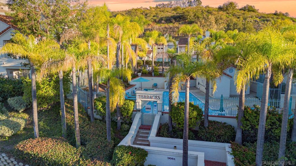 Variable price range 585K - 625K. Discover this beautiful 2-bedroom, 2-bath first floor end-unit featuring an open floor plan, breathtaking views, stunning sunsets with a detached garage in the heart of Scripps Ranch. The spacious living area flows seamlessly into a well-appointed kitchen with a cozy fireplace, creating an ideal space for everyday living. The home features dual primary suites, tasteful neutral décor, in-unit laundry, and a private one-car garage with ample storage. Designed with ADA built-ins, ideal for accessibility needs and easily removable if desired. Experience resort-style, 5-star living at Scripps Terraces, a highly desirable community close to parks, shopping, dining, hiking trails, and top-rated schools. Conveniently located near Miramar, Sorrento Valley, Qualcomm, UCSD, Alliant University, and with easy freeway access. This is a rare opportunity you won't want to miss"”imagine yourself enjoying sunset views from your living room or patio in this exceptional home.