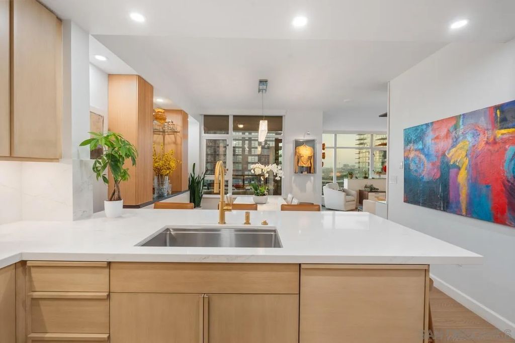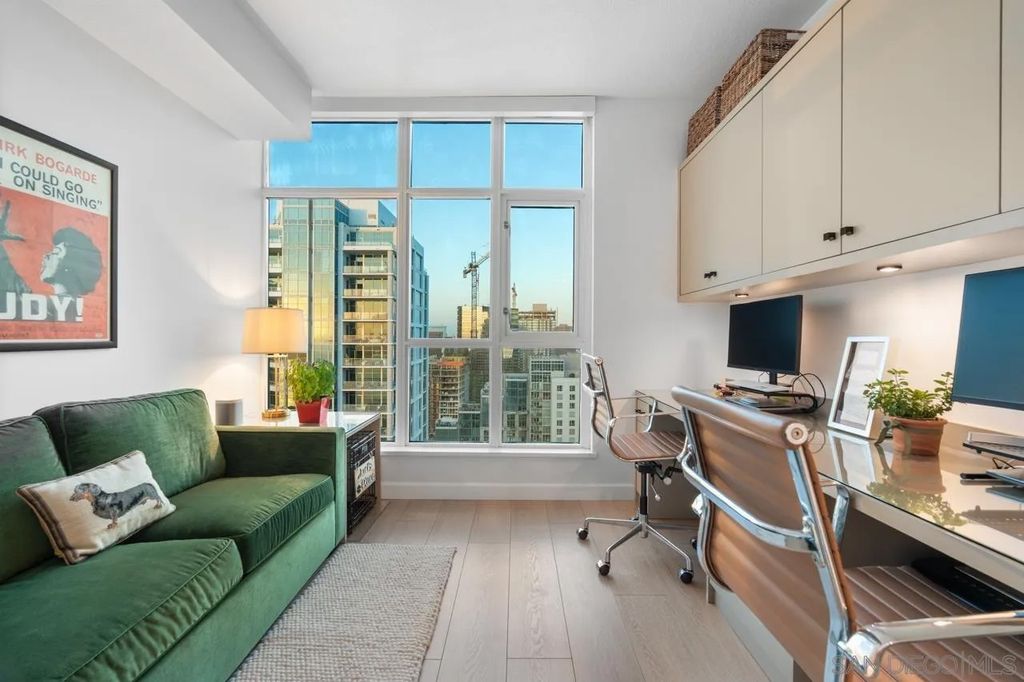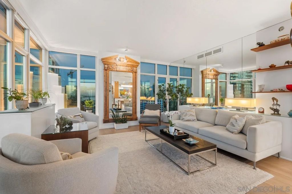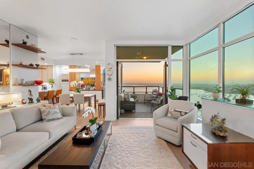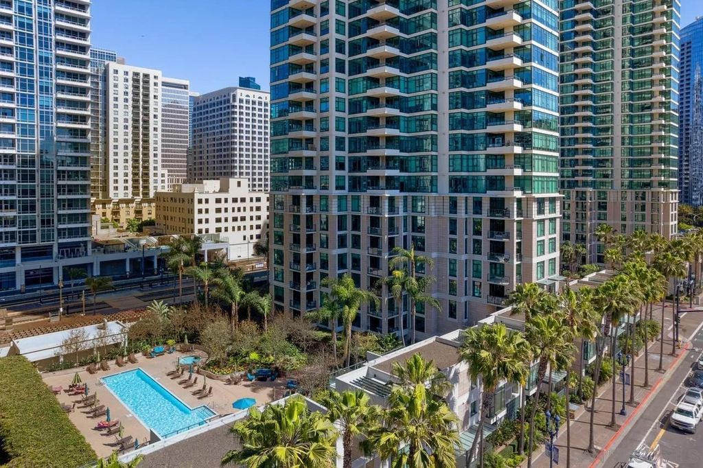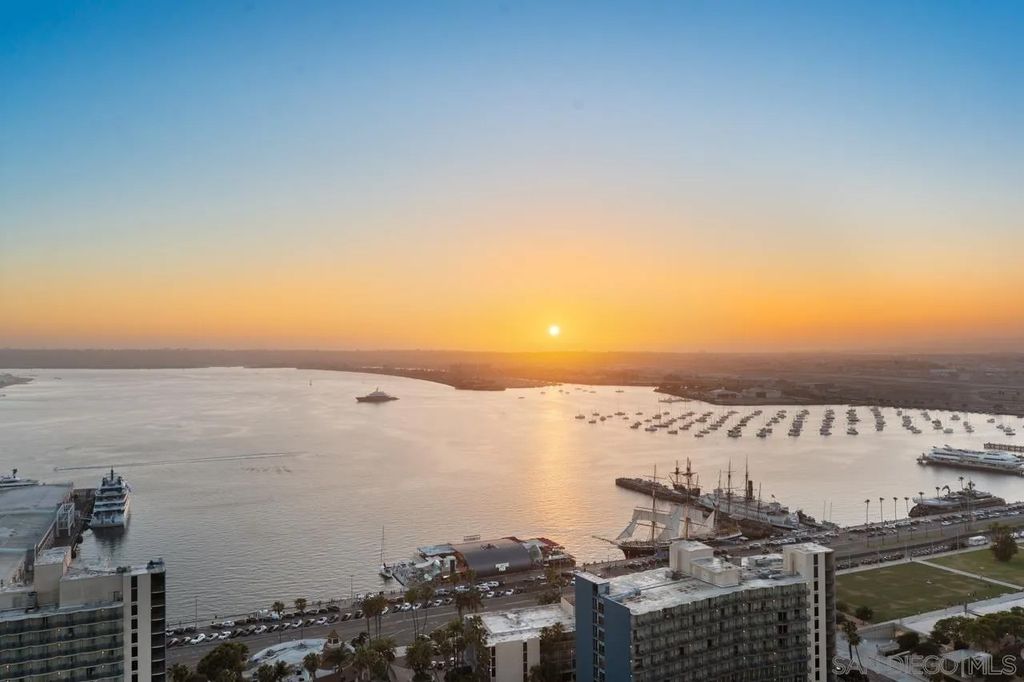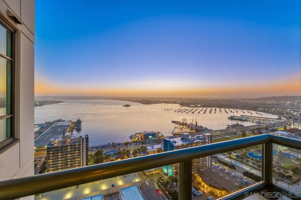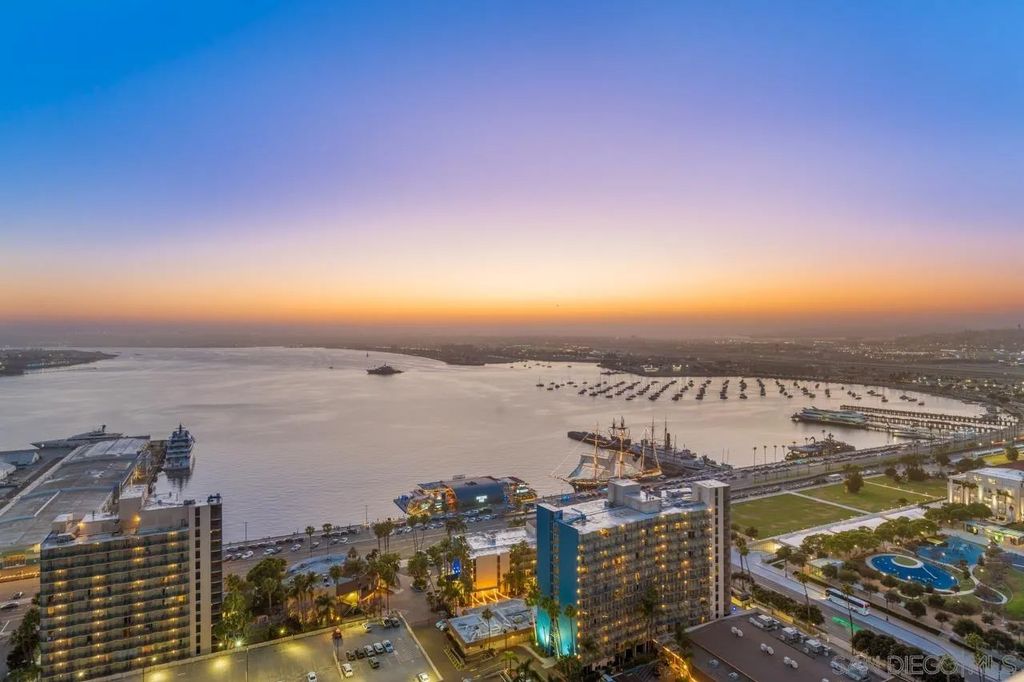 Soaring high above the city on the 31st floor of the distinguished Grande North, this rare corner residence commands a front-row seat to San Diego's most breathtaking scenery. Walls of glass unveil an ever-changing canvas of San Diego Bay, the glittering skyline, distant mountains, and the vast Pacific beyond. From sunrise to sailboat regattas, golden sunsets to SeaWorld's nightly fireworks"”every moment is a masterpiece, best enjoyed from your own private terrace in the sky. This fully remodeled and professionally designed 2-bedroom, 2-bath home has been reimagined with a focus on luxury, comfort, and functionality. Both bathrooms have been completely renovated with designer finishes and thoughtful details. The chef-inspired kitchen is equipped with new Sub-Zero and Wolf appliances, quartz countertops, and sleek custom cabinetry. Enhancing the experience throughout the home is a state-of-the-art Bang & Olufsen surround sound system, delivering rich, immersive audio. Motorized window shades, custom closets, and built-in storage offer refined ease, while every design detail has been meticulously curated. This is more than a home"”it's a lifestyle inspired by The Art of Living. Whether you're entertaining against a sunset backdrop or enjoying a quiet morning above the bay, this residence delivers a daily experience of beauty, style, and sophistication. Welcome home! Supplement...This residence in the sky has been completely reimagined with luxury, comfort, and style in mind. Every surface and system has been upgraded to create a refined, turnkey home. The chef's kitchen features new Sub-Zero and Wolf appliances, custom cabinetry, and sleek quartz countertops"”equally suited for everyday living and entertaining. Both the primary and guest baths have been fully renovated with spa-inspired finishes and designer touches. Thoughtful built-in storage enhances the primary bedroom, dining area, and guest room/office. Luxury vinyl flooring runs throughout, paired with electronic shades and custom lighting to elevate the ambiance. Additional upgrades include a Bang & Olufsen pre-wired sound system, new LG washer/dryer, updated plumbing with new shut-off valves, and a well-proportioned terrace perfect for enjoying panoramic sunsets and fireworks. The Grande North is one of San Diego's most sought-after luxury high-rises, offering a full-service lifestyle just one block from the San Diego Bay and vibrant Little Italy. Residents enjoy an array of amenities including a striking lobby ( new furniture coming soon) with 24-hour security, high-definition surveillance, an 80' heated lap pool, jacuzzi spa, BBQ area, and lush garden retreat. Additional features include concierge service, a well-equipped fitness center and elegant resident lounge. HOA covers high-speed Google fiber, gas, water, trash, and common area insurance. Moments away from the San Diego Bayfront, Rady Shell for waterfront concerts, the County Waterfront Park, Little Italy and the RADD District's curated shops and restaurants, The Grande North blends urban sophistication with coastal charm"”luxury living in the heart of San Diego. You are home!