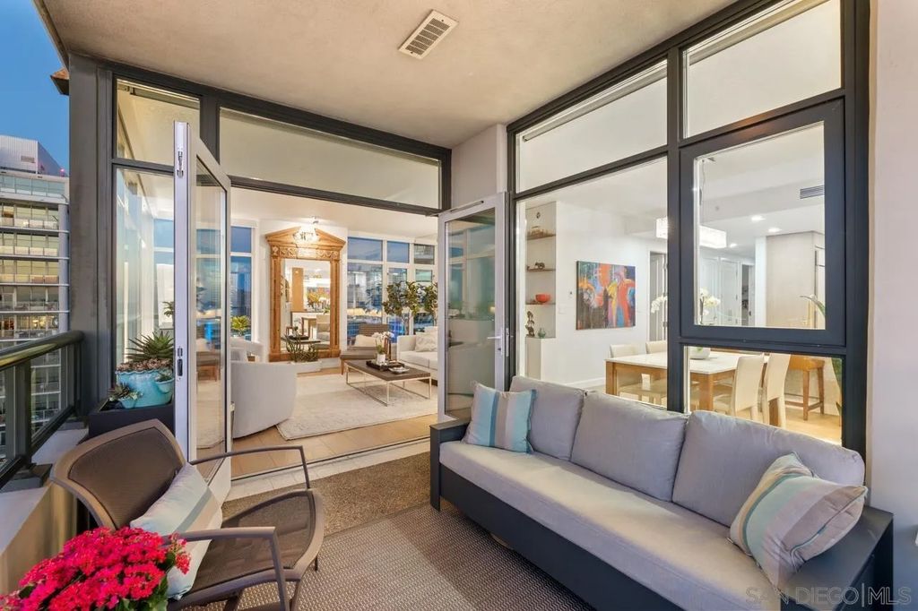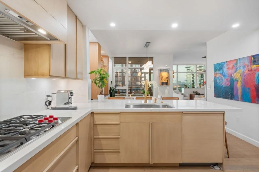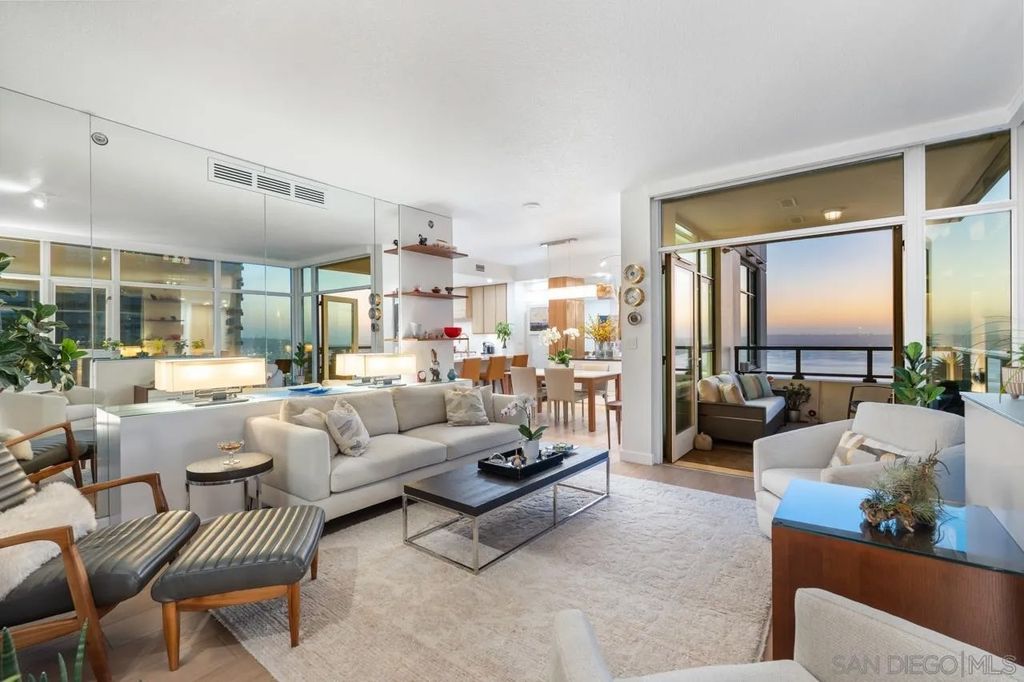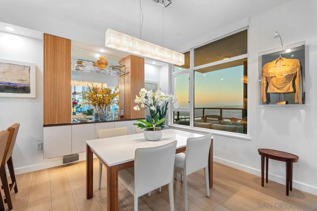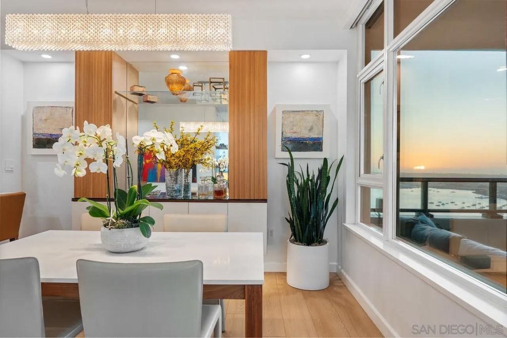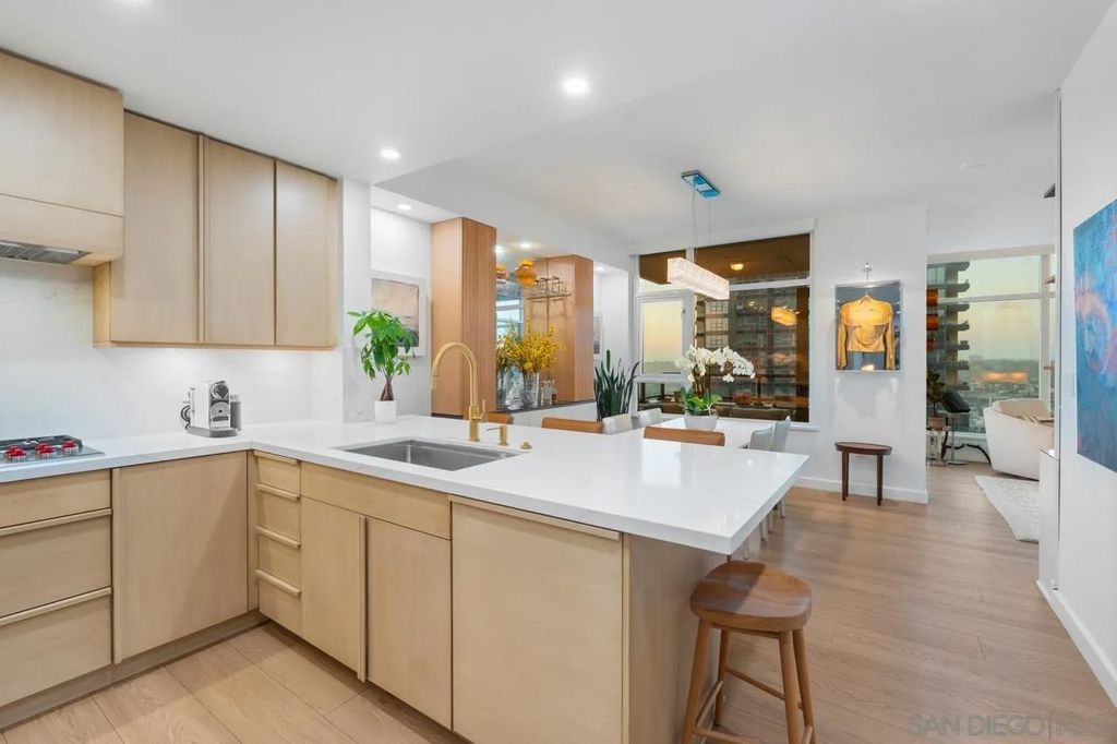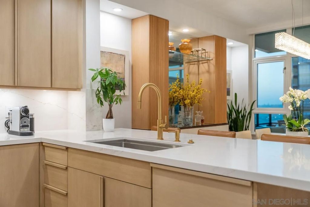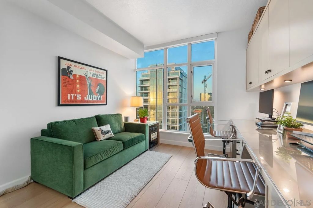 Soaring high above the city on the 31st floor of the distinguished Grande North, this rare corner residence commands a front-row seat to San Diego's most breathtaking scenery. Walls of glass unveil an ever-changing canvas of San Diego Bay, the glittering skyline, distant mountains, and the vast Pacific beyond. From sunrise to sailboat regattas, golden sunsets to SeaWorld's nightly fireworks"”every moment is a masterpiece, best enjoyed from your own private terrace in the sky. This fully remodeled and professionally designed 2-bedroom, 2-bath home has been reimagined with a focus on luxury, comfort, and functionality. Both bathrooms have been completely renovated with designer finishes and thoughtful details. The chef-inspired kitchen is equipped with new Sub-Zero and Wolf appliances, quartz countertops, and sleek custom cabinetry. Enhancing the experience throughout the home is a state-of-the-art Bang & Olufsen surround sound system, delivering rich, immersive audio. Motorized window shades, custom closets, and built-in storage offer refined ease, while every design detail has been meticulously curated. This is more than a home"”it's a lifestyle inspired by The Art of Living. Whether you're entertaining against a sunset backdrop or enjoying a quiet morning above the bay, this residence delivers a daily experience of beauty, style, and sophistication. Welcome home! Supplement...This residence in the sky has been completely reimagined with luxury, comfort, and style in mind. Every surface and system has been upgraded to create a refined, turnkey home. The chef's kitchen features new Sub-Zero and Wolf appliances, custom cabinetry, and sleek quartz countertops"”equally suited for everyday living and entertaining. Both the primary and guest baths have been fully renovated with spa-inspired finishes and designer touches. Thoughtful built-in storage enhances the primary bedroom, dining area, and guest room/office. Luxury vinyl flooring runs throughout, paired with electronic shades and custom lighting to elevate the ambiance. Additional upgrades include a Bang & Olufsen pre-wired sound system, new LG washer/dryer, updated plumbing with new shut-off valves, and a well-proportioned terrace perfect for enjoying panoramic sunsets and fireworks. The Grande North is one of San Diego's most sought-after luxury high-rises, offering a full-service lifestyle just one block from the San Diego Bay and vibrant Little Italy. Residents enjoy an array of amenities including a striking lobby ( new furniture coming soon) with 24-hour security, high-definition surveillance, an 80' heated lap pool, jacuzzi spa, BBQ area, and lush garden retreat. Additional features include concierge service, a well-equipped fitness center and elegant resident lounge. HOA covers high-speed Google fiber, gas, water, trash, and common area insurance. Moments away from the San Diego Bayfront, Rady Shell for waterfront concerts, the County Waterfront Park, Little Italy and the RADD District's curated shops and restaurants, The Grande North blends urban sophistication with coastal charm"”luxury living in the heart of San Diego. You are home!