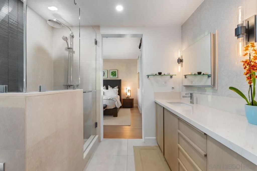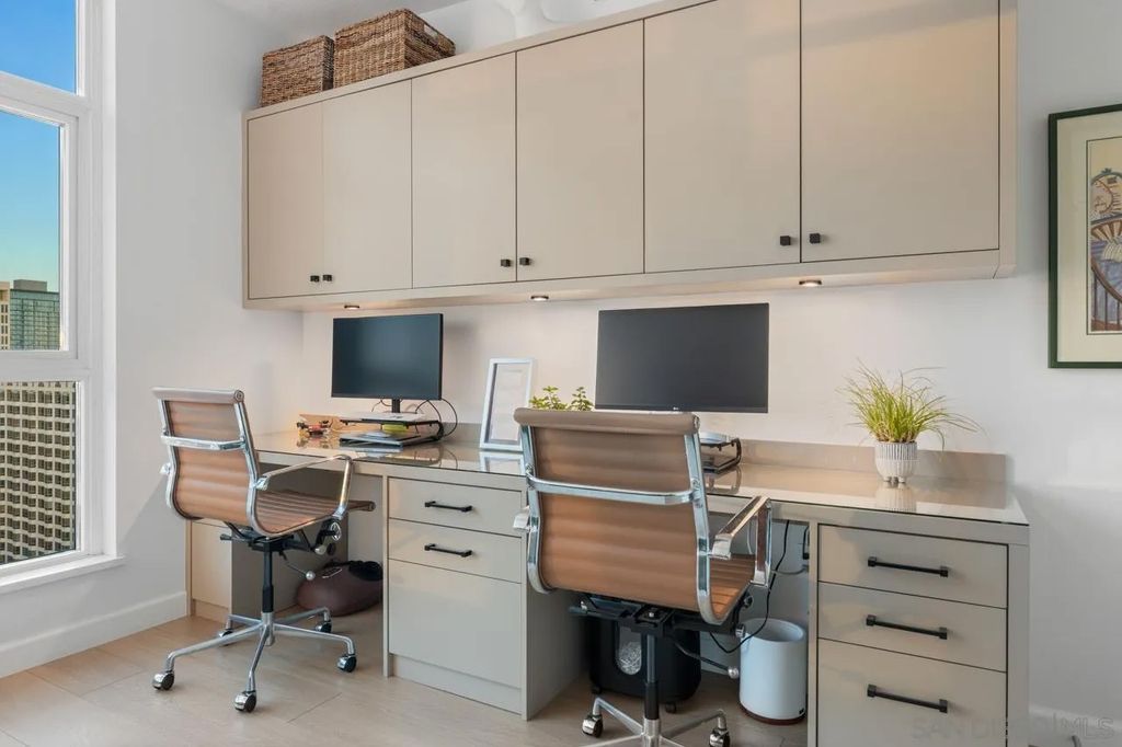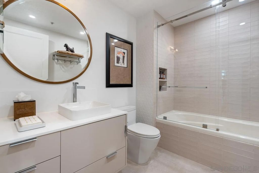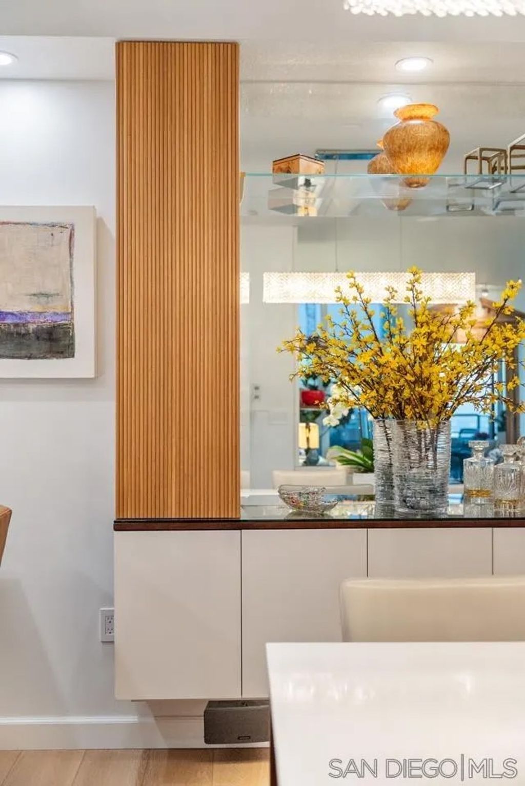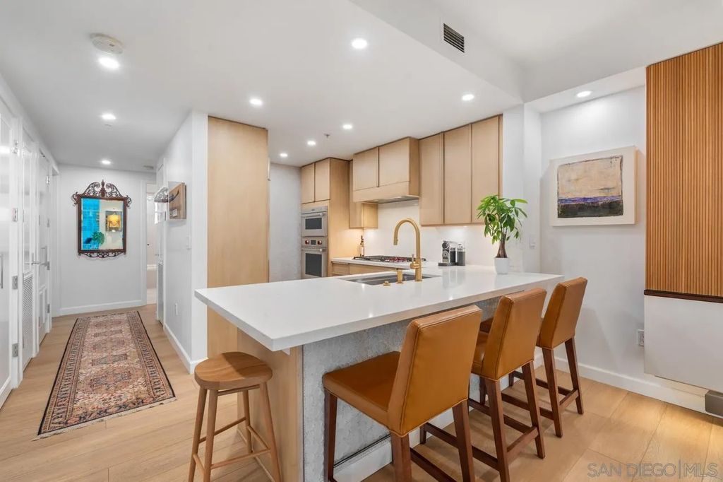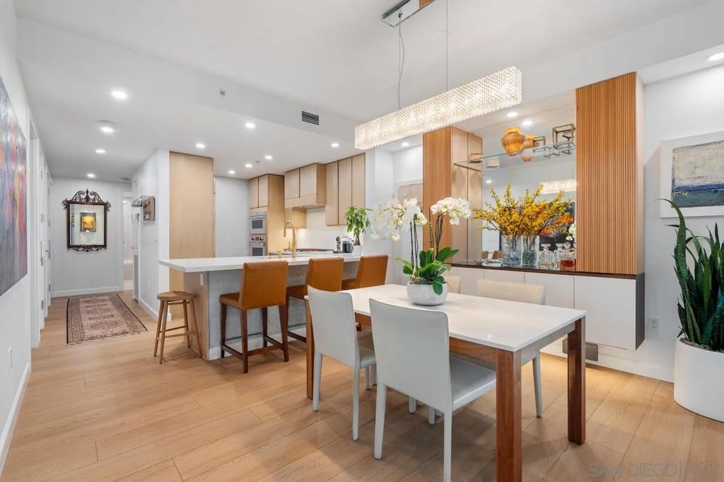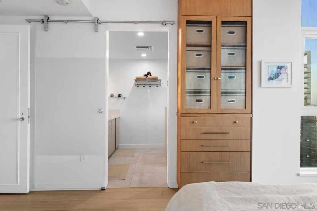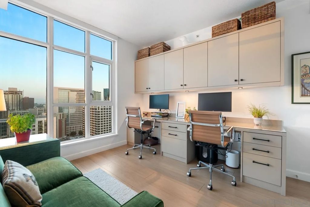 Soaring high above the city on the 31st floor of the distinguished Grande North, this rare corner residence commands a front-row seat to San Diego's most breathtaking scenery. Walls of glass unveil an ever-changing canvas of San Diego Bay, the glittering skyline, distant mountains, and the vast Pacific beyond. From sunrise to sailboat regattas, golden sunsets to SeaWorld's nightly fireworks"”every moment is a masterpiece, best enjoyed from your own private terrace in the sky. This fully remodeled and professionally designed 2-bedroom, 2-bath home has been reimagined with a focus on luxury, comfort, and functionality. Both bathrooms have been completely renovated with designer finishes and thoughtful details. The chef-inspired kitchen is equipped with new Sub-Zero and Wolf appliances, quartz countertops, and sleek custom cabinetry. Enhancing the experience throughout the home is a state-of-the-art Bang & Olufsen surround sound system, delivering rich, immersive audio. Motorized window shades, custom closets, and built-in storage offer refined ease, while every design detail has been meticulously curated. This is more than a home"”it's a lifestyle inspired by The Art of Living. Whether you're entertaining against a sunset backdrop or enjoying a quiet morning above the bay, this residence delivers a daily experience of beauty, style, and sophistication. Welcome home! Supplement...This residence in the sky has been completely reimagined with luxury, comfort, and style in mind. Every surface and system has been upgraded to create a refined, turnkey home. The chef's kitchen features new Sub-Zero and Wolf appliances, custom cabinetry, and sleek quartz countertops"”equally suited for everyday living and entertaining. Both the primary and guest baths have been fully renovated with spa-inspired finishes and designer touches. Thoughtful built-in storage enhances the primary bedroom, dining area, and guest room/office. Luxury vinyl flooring runs throughout, paired with electronic shades and custom lighting to elevate the ambiance. Additional upgrades include a Bang & Olufsen pre-wired sound system, new LG washer/dryer, updated plumbing with new shut-off valves, and a well-proportioned terrace perfect for enjoying panoramic sunsets and fireworks. The Grande North is one of San Diego's most sought-after luxury high-rises, offering a full-service lifestyle just one block from the San Diego Bay and vibrant Little Italy. Residents enjoy an array of amenities including a striking lobby ( new furniture coming soon) with 24-hour security, high-definition surveillance, an 80' heated lap pool, jacuzzi spa, BBQ area, and lush garden retreat. Additional features include concierge service, a well-equipped fitness center and elegant resident lounge. HOA covers high-speed Google fiber, gas, water, trash, and common area insurance. Moments away from the San Diego Bayfront, Rady Shell for waterfront concerts, the County Waterfront Park, Little Italy and the RADD District's curated shops and restaurants, The Grande North blends urban sophistication with coastal charm"”luxury living in the heart of San Diego. You are home!