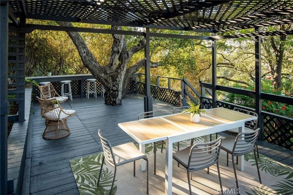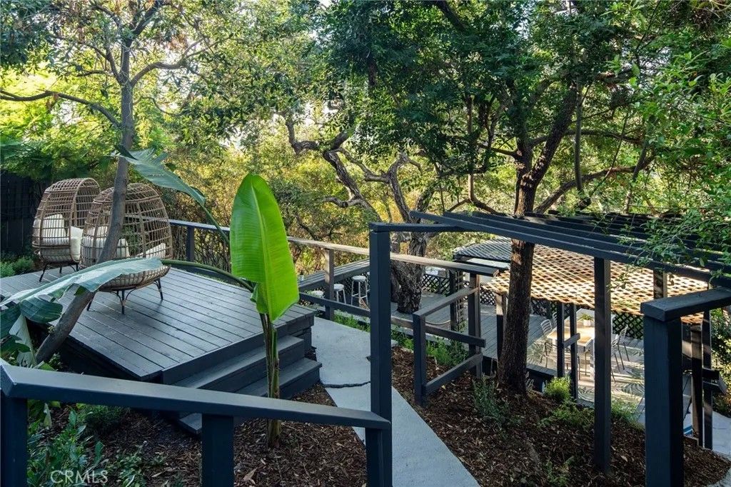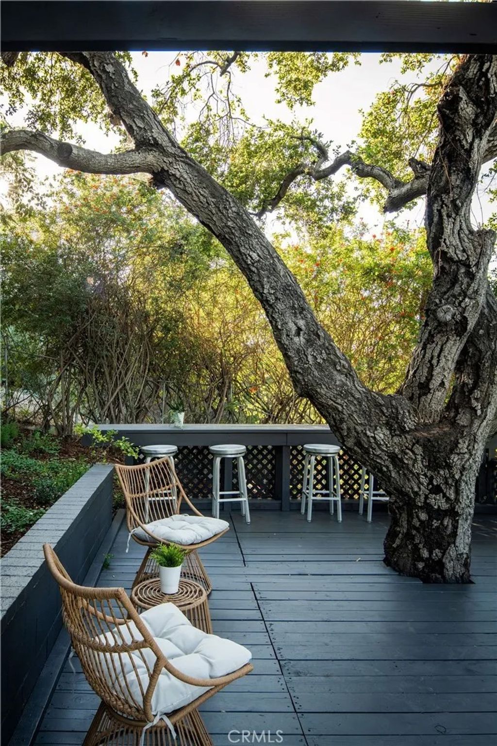 Magical Eagle Rock treehouse alert! Tucked away, set back from the street, nestled amongst majestic trees and sparkling city lights hides a tranquil sanctuary overlooking the iconic Eagle Rock, San Gabriel Mountains and the world below! Welcome to Casa Escaln, another work of art brought to you by Helmut W of Archwood Design Haus! Located in prime Eagle Rock, just a few blocks from all the trendy shops and eateries on nearby Colorado Blvd, yet exuding a wonderful feeling of seclusion and connection to nature. This immaculately designed 3-bedroom, 2-bath refuge will inspire joy from the moment you step foot inside. Natural light, thoughtful finishes, exquisite craftsmanship, updated systems and good energy collide in the best of ways! From the moment you enter the front courtyard you will feel like you have left LA and found your own private safe haven. Inside, warm wood floors span the bright airy layout and dramatic windows and sliders overlook nothing but greenery and awe inspiring views in all directions. The living and dining spaces flow effortlessly and the gorgeous chef's kitchen leaves nothing to be desired with custom cabinetry, designer selected hardware and top of the line appliances. The ultra dreamy primary suite opens up directly to a custom deck where you can sip morning coffee while soaking in uplifting sunrise views over the vistas. The lower level is perfectly appointed w/ two additional bedrooms, an epic customized laundry room and a grand bathroom with clawfoot tub / shower combo. Out back, the lush backyard is pure serenity! The expansive nearly 8,000 sq ft lot serves as an idyllic canvas for multiple terraced decks, lounge areas and flat space for quiet meditation, amazing dinner parties and endless play! One of the decks was built around a beautiful old tree and features a built-in bar seating area under the shade of the tree! This property is truly unique in that it offers the rare combo of sweeping views mixed with usable backyard space, sought after schools and easy proximity to all the trendy shops and cafes. This one is a rare gem in a phenomenal neighborhood!