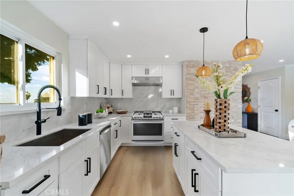Views, Views, Views!?Welcome to this meticulously renovated single-family view home located in one of the most prestigious neighborhoods of Hacienda Heights, within walking distance to top-rated schools. This beautiful residence offers 3 bedrooms and 2 bathrooms, featuring a bright living room with a cozy fireplace highlighted by a modern coastal-style ledger stone design. Expansive living room windows capture stunning views, creating a peaceful and inviting atmosphere. The fully upgraded kitchen boasts brand-new cabinetry, countertops, and appliances, along with a center island accented by elegant pendant lightingperfect for entertaining family and guests. Both bathrooms have been tastefully remodeled with designer-selected vanities and countertops, a new Kohler bathtub, American Standard toilets, and Moen faucets. Additional upgrades include a new electrical panel, new attic insulation, new garage door, waterproof flooring, recessed lighting throughout, and fresh interior and exterior paint. The spacious backyard offers incredible potential to build an ADU. This exceptional home truly has it all and wont last longschedule your private showing today.