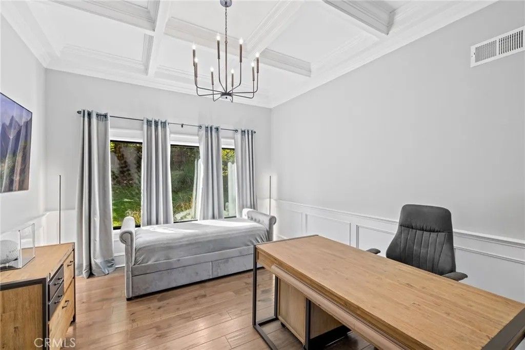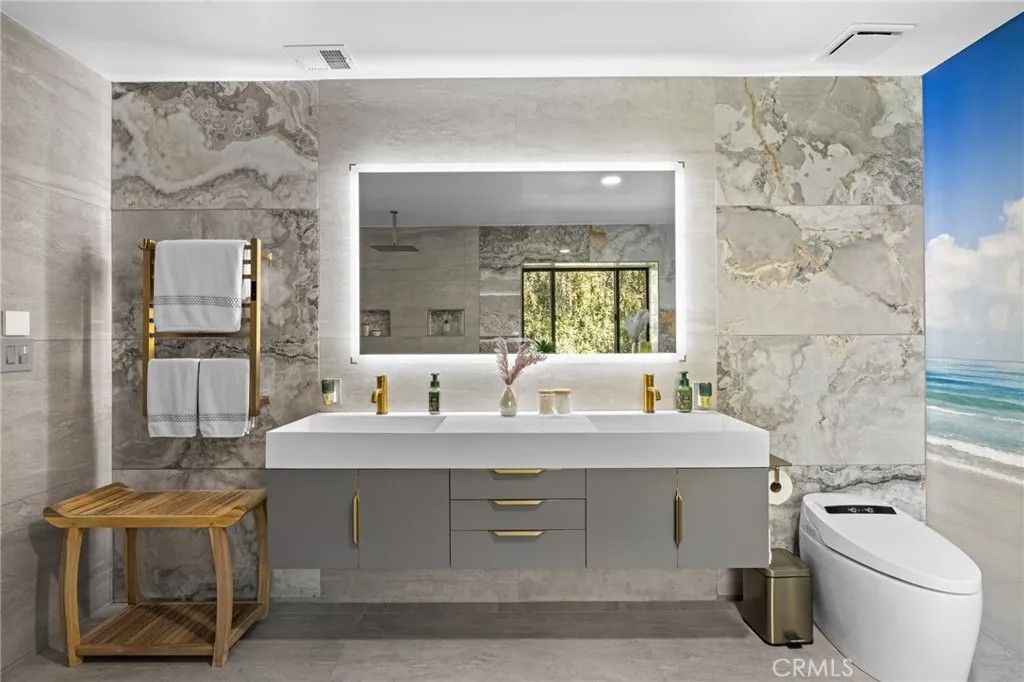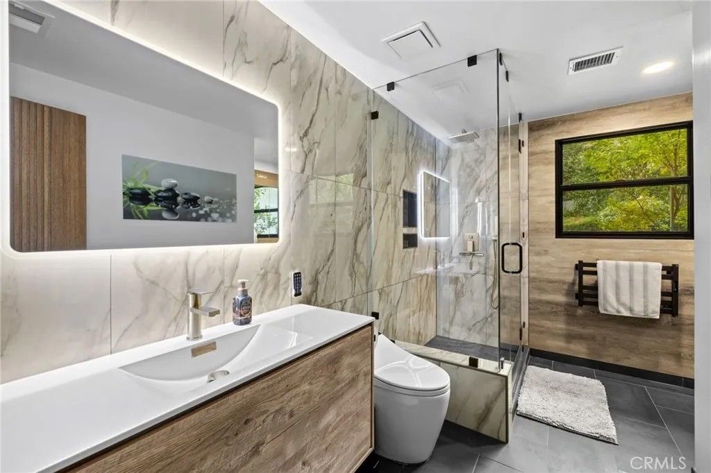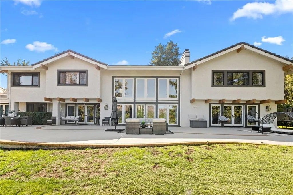 Stunning, recently renovated, and fully furnished, this exceptional home has been thoughtfully curated to complement its modern contemporary design. Perfectly situated on the exclusive North Ranch Golf Course, it offers panoramic views of both the lush fairways and the surrounding mountains. Special details and bespoke design make this home unique not only for the breathtaking views as you walk in through the front door but for its character that can only be appreciated in person. Every detail reflects modern luxuryfrom the open-concept living spaces to the curated finishes throughout.The chefs kitchen features top-of-the-line appliances, a double oven, built-in espresso/coffee station, and a spacious walk-in pantry. The home includes two primary suites, each with custom walk-in closets and spa-inspired bathrooms featuring jetted tubs and rain showers that create a true retreat experience. The open living room is an entertainers dream, showcasing vaulted ceilings, floor-to-ceiling windows, a bar, and a temperature-controlled wine cellar. A separate family room with a large theater screen, full sound setup, and fireplace provides the perfect space to relax and unwind. The custom-built media room/home theater delivers an immersive entertainment experience unlike any other. Exterior upgrades include a new roof, all-new fascia, gutters and protectors, two new A/C units with new ducting installed in 2024, privacy hedging, a private gate, and upgraded garage doors. The finished three-car garage includes an electric vehicle charging unit. The beautiful and peaceful backyard is framed by majestic redwood trees offering privacy while overlooking the impeccably manicured golf course. Enjoy the fully furnished outdoor patio with a dining area, firepit lounge, and outdoor kitchen complete with BBQ, cooktop, counter space, and refrigeratorperfect for evening gatherings under the stars. This gated property features extensive security monitoring for peace of mind. The photos capture the homes elegance, but seeing it in person truly transports even the most discerning buyer to another level of luxury living.