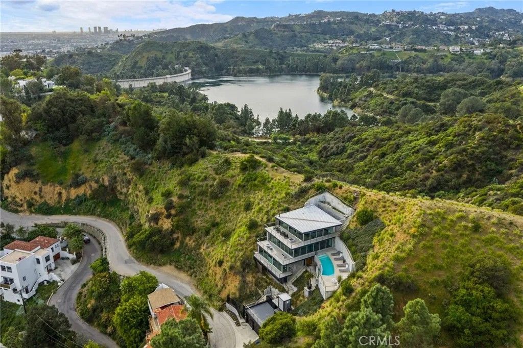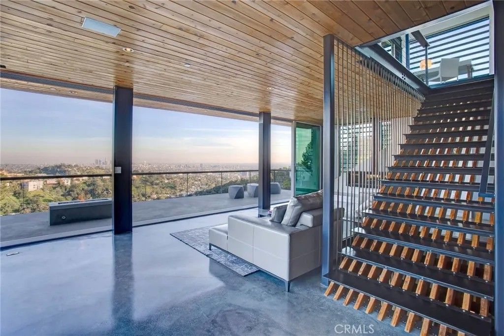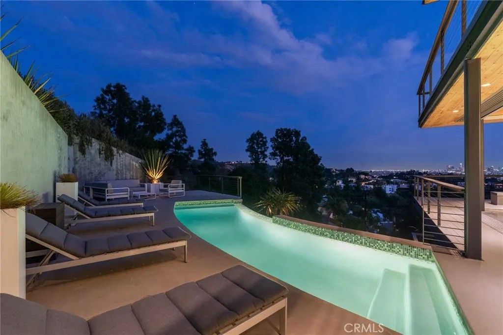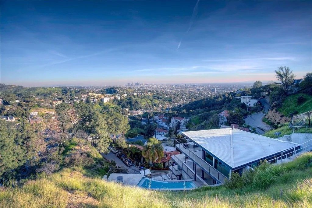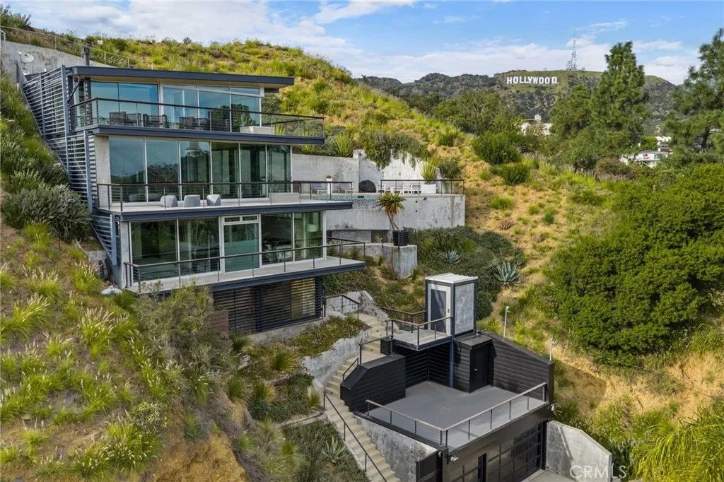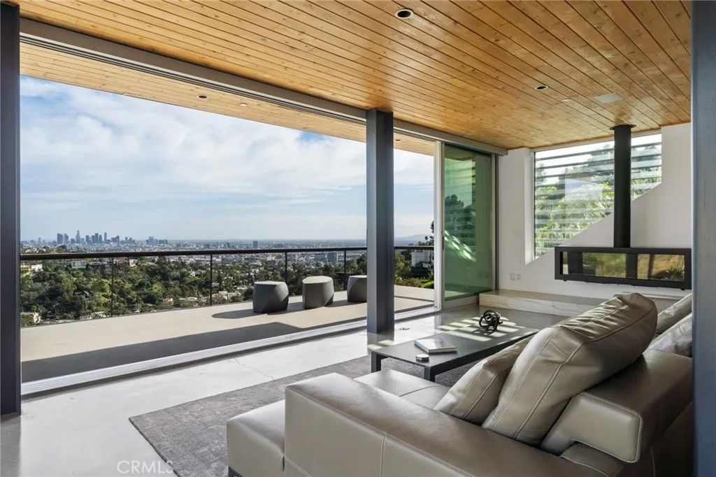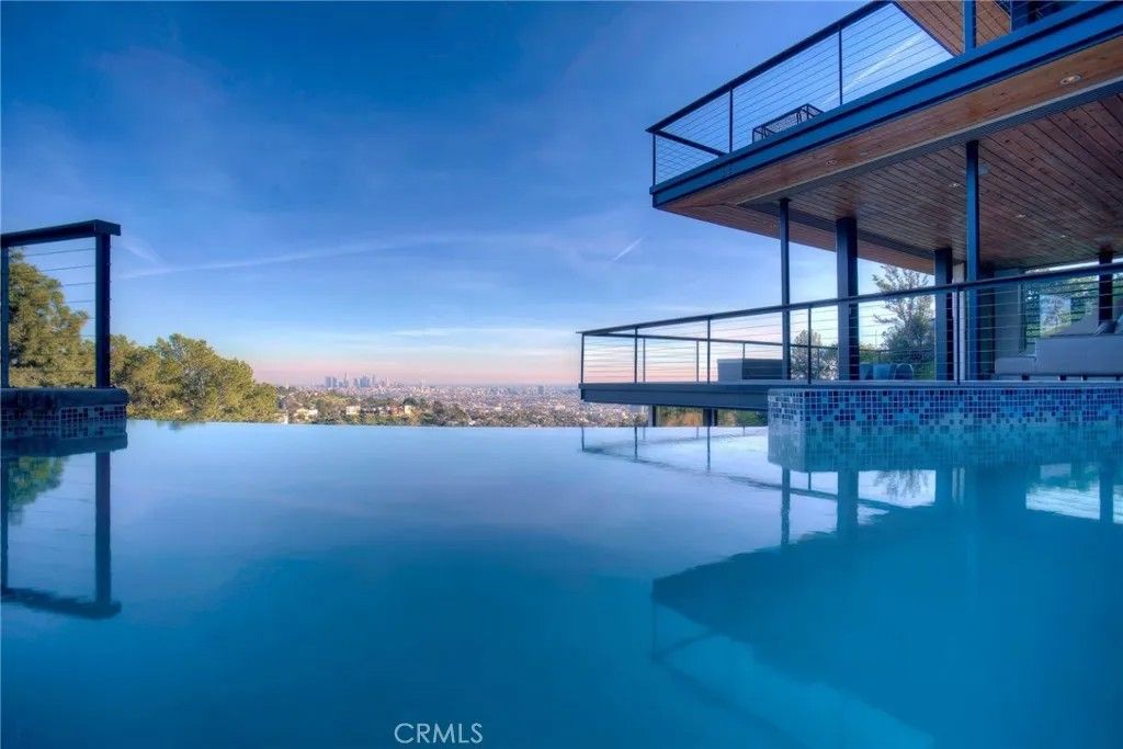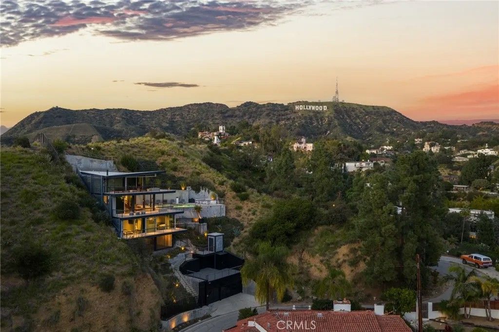2917 Durand Drive | Hollywood Hills Perched at the pinnacle of Beachwood Canyon, this architecturally striking steel-constructed residence (2,405 sq ft on a 9,119 sq ft ridgeline lot) offers a rare convergence of unobstructed panoramic views, total privacy, and turnkey luxury living. Commanding sweeping vistas encompassing the Hollywood Sign, Griffith Observatory, Downtown Los Angeles, Lake Hollywood and the city skyline beyond, the home is uniquely positioned along a ridgeline with no immediate neighbors, creating a level of seclusion rarely found in the Hollywood Hills. Designed for architectural integrity and effortless indooroutdoor living, the residence features expansive walls of glass, soaring ceilings, polished concrete floors warmed by near-silent radiant heating throughout, and a dedicated gym/office space on the lower levelwith every level offering sweeping views from gym to master bedroom. An elevator provides convenient access between select levels, complementing the home's thoughtful engineering and modern livability. On the main living level and within the primary suite, floor-to-ceiling glass doors retract seamlessly from the corner, dissolving the boundary between interior and exterior and allowing the home to fully open to the surrounding skyline. An infinity-edge pool on the main level steps away from the living room appears to merge directly with the city beyond, anchoring an entertainer's setting that feels suspended above Los Angeles. Refined modern comforts include a gas fireplace, instant hot water in the kitchen, a glass-enclosed shower with direct city views, and a spa-like primary suite featuring a steam shower and Japanese soaking tubcreating a private retreat framed by dramatic city views. The interiors are offered fully furnished with high-end, designer-curated pieces, presenting a truly turnkey opportunity for the most discerning buyer. Each space has been thoughtfully composed to complement the home's modern materials, clean lines, and dramatic setting. With three bedrooms and 2.5 baths (3 full equivalent), the layout balances openness with intimacy, functioning equally well as a primary residence, a sophisticated retreat, or a statement architectural acquisition. This is not a conventional hillside home. It is a rare view-driven residence, defined by privacy, design, and permanenceoffered as a complete, ready-to-live experience. Private tours available by appointment.