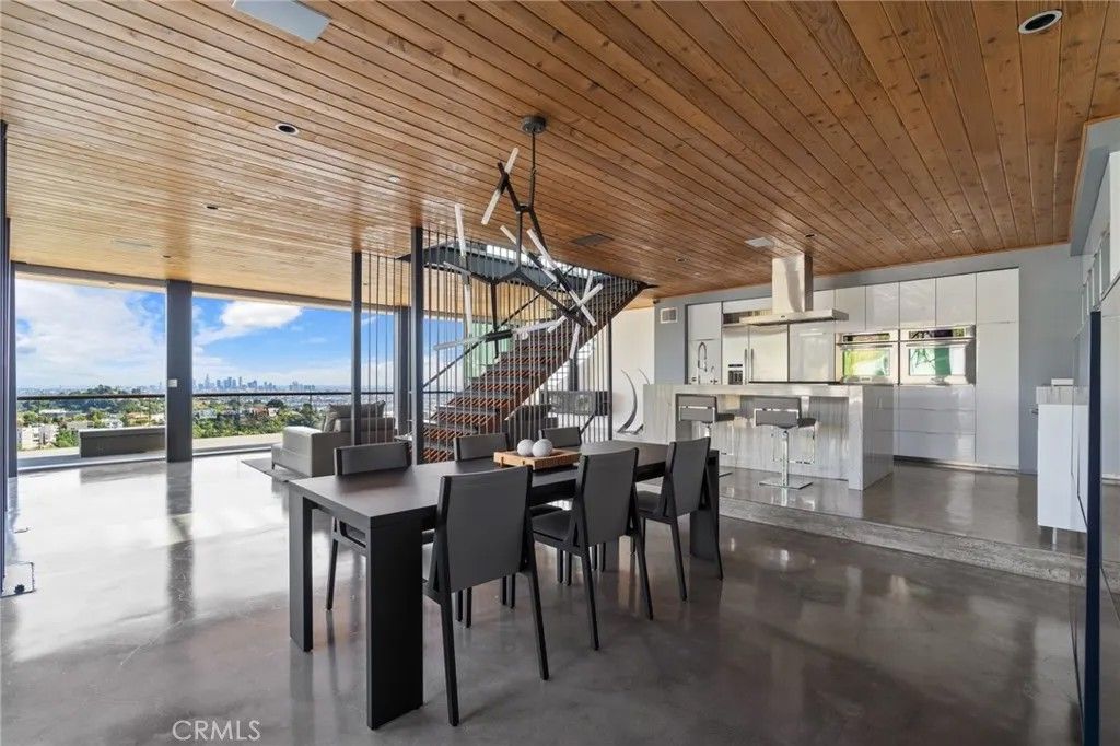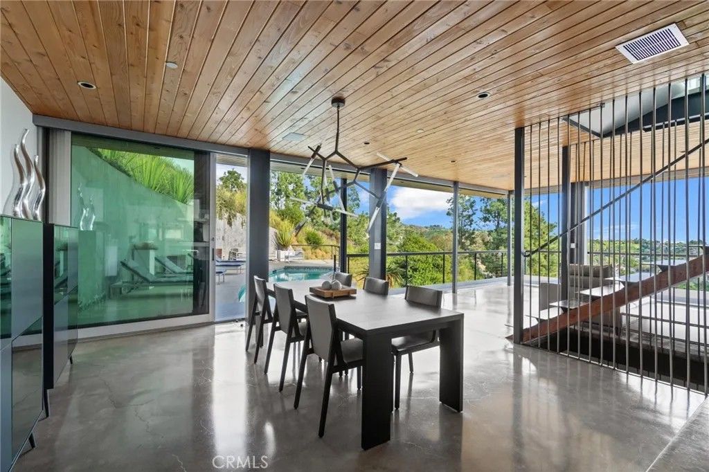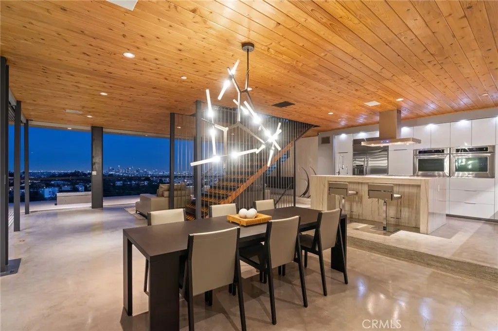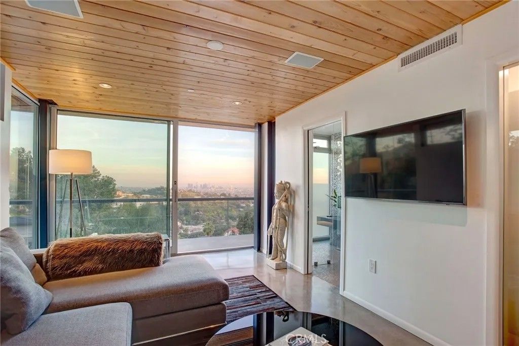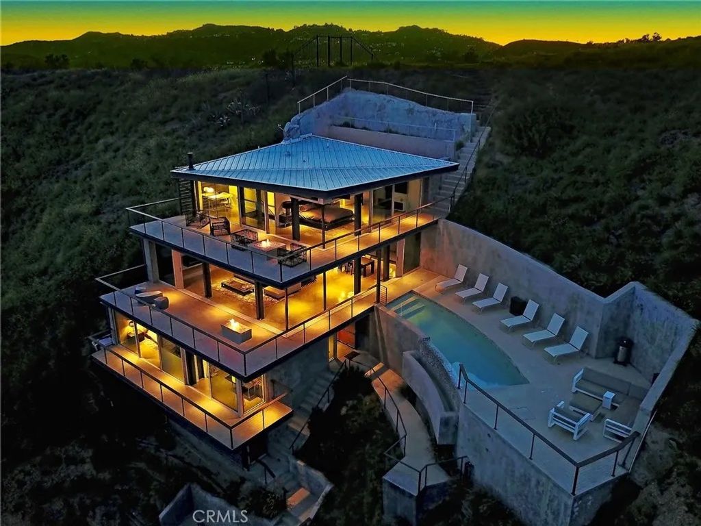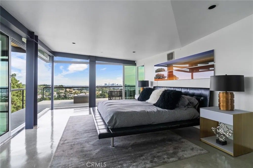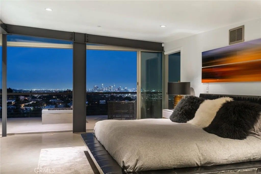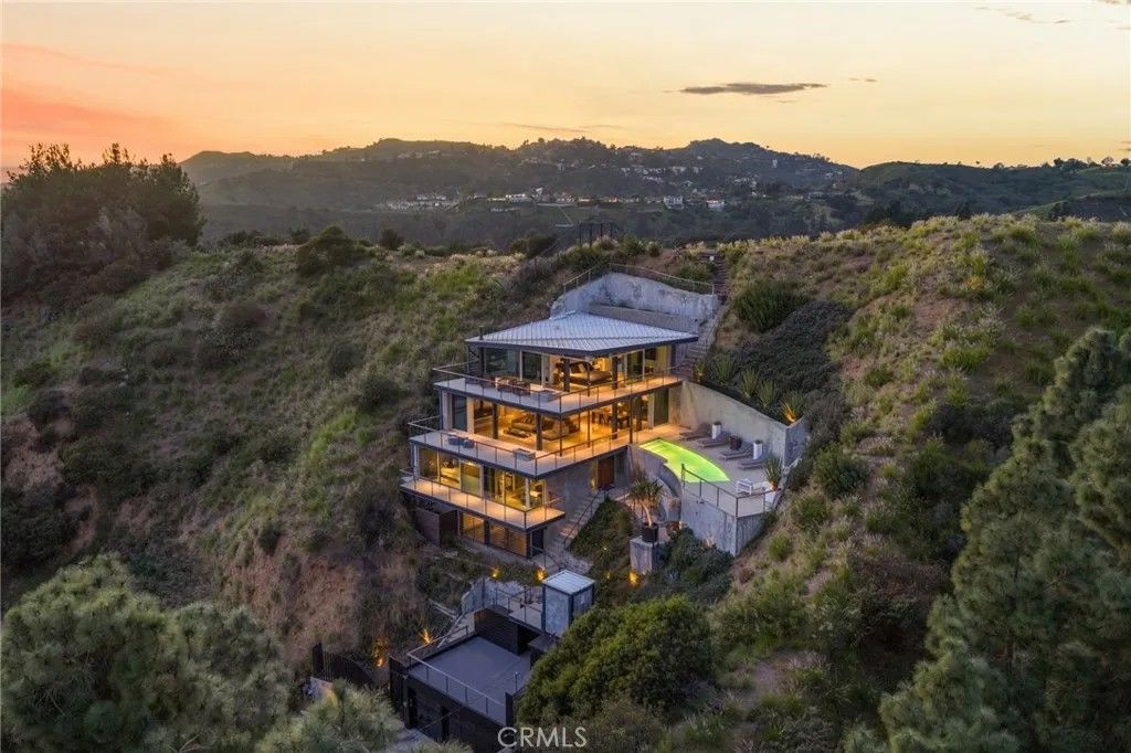 2917 Durand Drive | Hollywood Hills Perched at the pinnacle of Beachwood Canyon, this architecturally striking steel-constructed residence (2,405 sq ft on a 9,119 sq ft ridgeline lot) offers a rare convergence of unobstructed panoramic views, total privacy, and turnkey luxury living. Commanding sweeping vistas encompassing the Hollywood Sign, Griffith Observatory, Downtown Los Angeles, Lake Hollywood and the city skyline beyond, the home is uniquely positioned along a ridgeline with no immediate neighbors, creating a level of seclusion rarely found in the Hollywood Hills. Designed for architectural integrity and effortless indooroutdoor living, the residence features expansive walls of glass, soaring ceilings, polished concrete floors warmed by near-silent radiant heating throughout, and a dedicated gym/office space on the lower levelwith every level offering sweeping views from gym to master bedroom. An elevator provides convenient access between select levels, complementing the home's thoughtful engineering and modern livability. On the main living level and within the primary suite, floor-to-ceiling glass doors retract seamlessly from the corner, dissolving the boundary between interior and exterior and allowing the home to fully open to the surrounding skyline. An infinity-edge pool on the main level steps away from the living room appears to merge directly with the city beyond, anchoring an entertainer's setting that feels suspended above Los Angeles. Refined modern comforts include a gas fireplace, instant hot water in the kitchen, a glass-enclosed shower with direct city views, and a spa-like primary suite featuring a steam shower and Japanese soaking tubcreating a private retreat framed by dramatic city views. The interiors are offered fully furnished with high-end, designer-curated pieces, presenting a truly turnkey opportunity for the most discerning buyer. Each space has been thoughtfully composed to complement the home's modern materials, clean lines, and dramatic setting. With three bedrooms and 2.5 baths (3 full equivalent), the layout balances openness with intimacy, functioning equally well as a primary residence, a sophisticated retreat, or a statement architectural acquisition. This is not a conventional hillside home. It is a rare view-driven residence, defined by privacy, design, and permanenceoffered as a complete, ready-to-live experience. Private tours available by appointment.