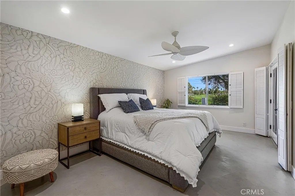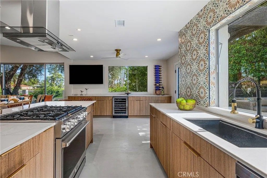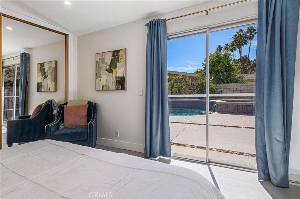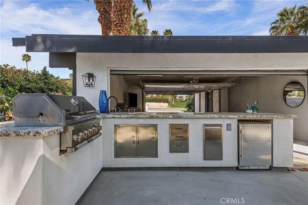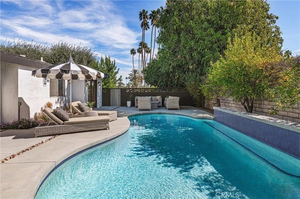 Discover timeless mid-century modern charm at 5155 East Bobolink Lane, a single-level desert retreat positioned between the 6th and 7th fairways of the Legend Course at Tahquitz Creek Golf Club. Built in 1962 and thoughtfully updated, this 4-bedroom, 3-bath home offers approximately 2,425 square feet of light-filled living with vaulted ceilings, a dual-sided vintage block fireplace, and an open chefs kitchen anchored by an oversized island and buffet with beverage fridgeideal for entertaining. The primary suite enjoys privacy and serene fairway views, a walk-in closet, and a spa-like bath with separate tub and shower. Step outside to resort-style grounds on a generous 10,454 sq ft lot: saltwater pool and spa with waterfall, new pool decking, circular fire pit, outdoor kitchen, shower, and multiple patios framed by swaying palms and mountain panoramas. Recent improvements include a new roof, updated HVAC, smooth stucco, upgraded electrical and lighting, and epoxied concrete floors, providing modern comfort with classic architectural character. With no HOA or land lease and current eligibility for a short-term rental permit, the property suits full-time residents, seasonal escapees, or investors seeking turnkey desert lifestyle income. Two-car garage, covered parking and flexible workshop/golf-cart space complete the package. Experience effortless indoor-outdoor living, dramatic views, and rare golf-course frontageschedule a private showing today and make this Palm Springs classic your own. Located minutes from downtown Palm Springs' vibrant dining, shopping and cultural scene, this iconic residence offers both peaceful solitude and easy access to city amenitiesan extraordinary opportunity in a coveted south-end neighborhood today.