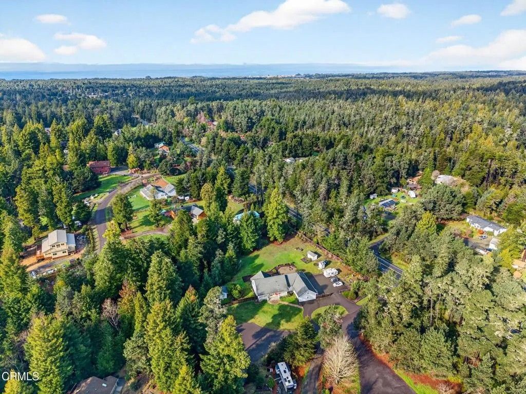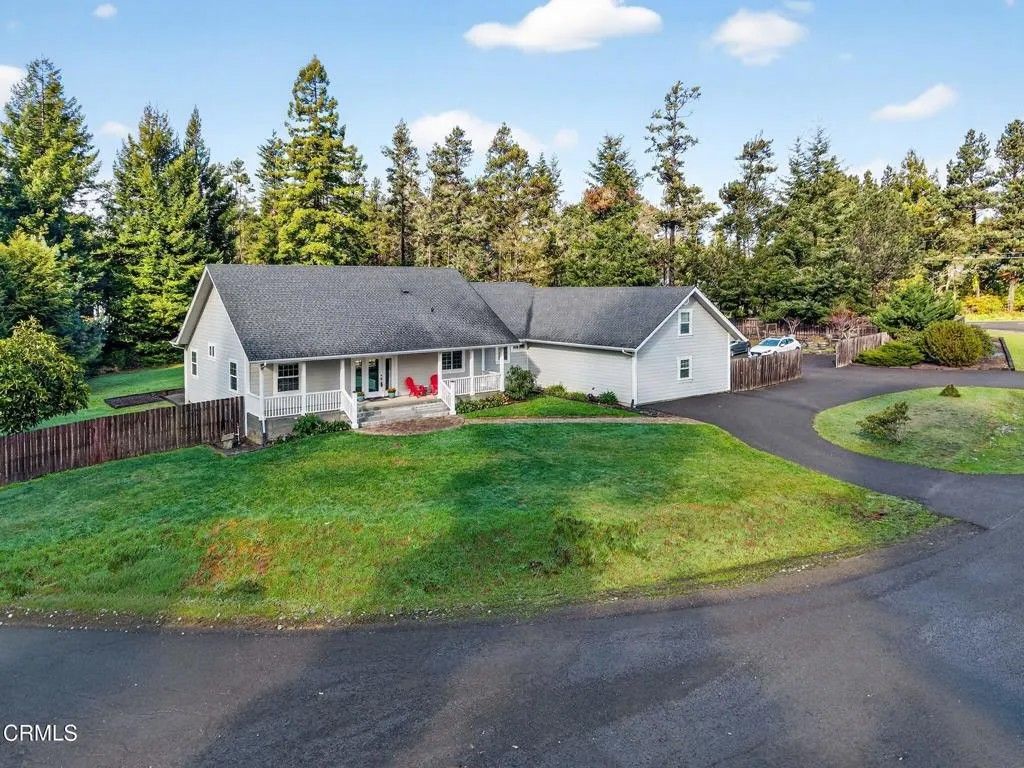Single-story sunbelt delight, located on a 1.8+/- acre parcel close to all that the Mendocino/Fort Bragg coast has to offer. The 3-bedroom, 2.5-bath home features a desirable layout with the primary suite and additional bedrooms on opposite ends of the home. The spacious open floorplan is ideal for entertaining with vaulted ceilings, French doors leading from the livingroom and dining areas out to the covered west-facing porch down to a patio area, great for BB-Q's and gatherings around the firepit. The kitchen has solid wood, cherry cabinets, a pantry, and a propane range. The primary suite is extra spacious with an attached office/sitting area, double walk-in closets, and a sleeping area (TV's included) with a bathroom with double sinks, a soaking tub, and a walk-in shower. There is plenty of storage in the 936+/- sq.ft. 3-car garage with workshop and floor-to-ceiling cabinets. The paved driveway leads to the small orchard, RV hook-up area and access to the large yard surrounded by mature trees.