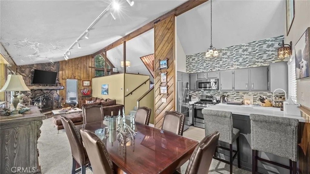 MOTIVATED SELLER! Welcome to your dream cabin in the desirable Arrowhead Villas! This charming 3-bedroom, 2-bath home is nestled on a downslope side of the mountain, surrounded by acres of protected natural forest. Enjoy easy entry-level access and level parking for 3 cars on a newly updated parking deck. Step inside to find vaulted ceilings and a large stone fireplace in the living room, perfect for cozy nights. The recently updated kitchen boasts stainless steel appliances and an eat-at bar area. Two sliding glass doors lead outside to a deck that runs the full length of the house, perfect for enjoying the beautiful forest views. A secret loft/game room provides a fun hideaway for kids. The home also features a convenient laundry area with a washer and dryer, and dual-zoned heating and air conditioning for year-round comfort. Enjoy stunning forest views and abundant wildlife from your backyard, complete with a seasonal stream. The west-facing position ensures spectacular sunsets. The roof has been recently inspected for your peace of mind. Blueprints are available at no cost for adding a 4th bedroom with a bath and additional decking, offering plenty of room to expand. Sold with all furniture and appliances, this cabin is move-in ready. With county-plowed roads in the winter, youll have easy access year-round. Located close to Lake Arrowhead Village and Santa's Skypark Village, and with quick access to Rim Highway 18. Dont miss this opportunity schedule a showing today!