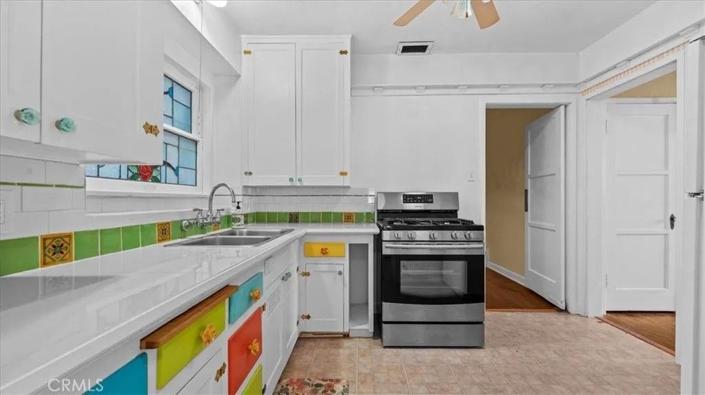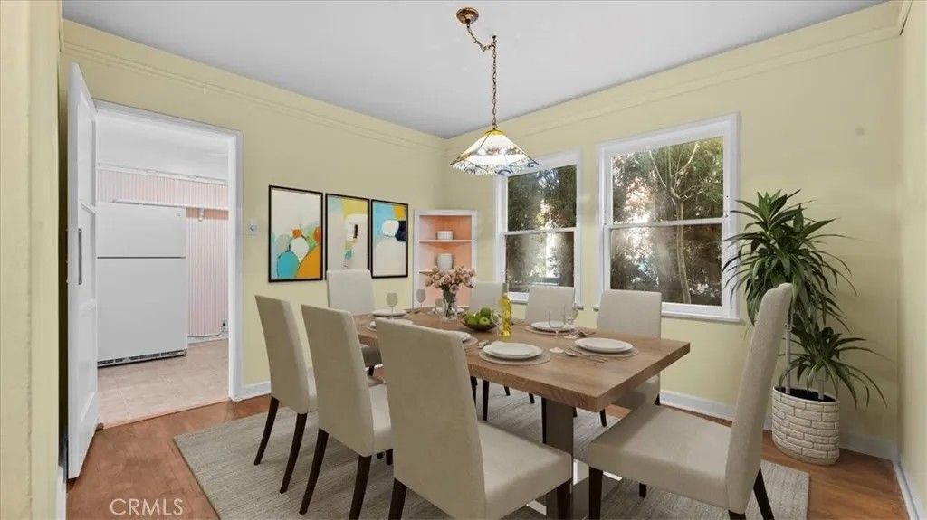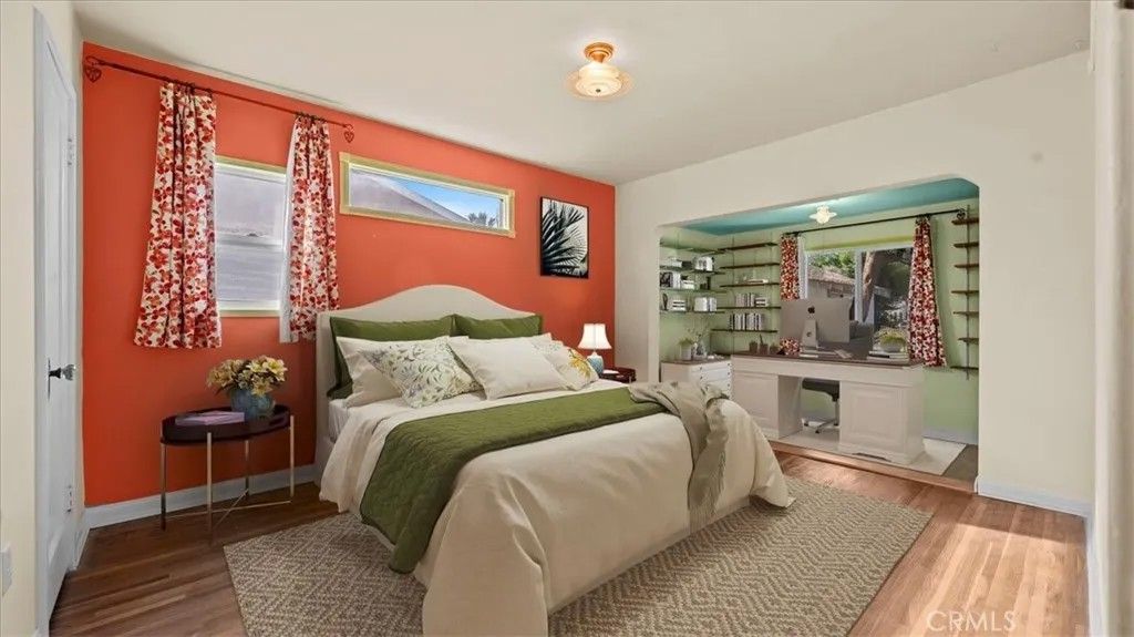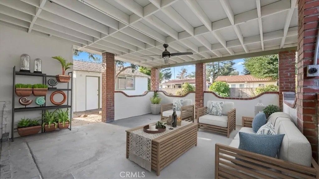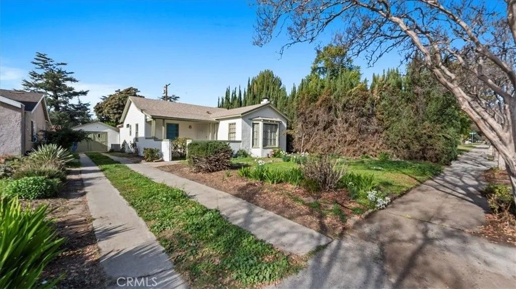 This charming vintage cottage bungalow is a rare blend of timeless character, thoughtful updates, and an inviting lifestyle setting. Located in one of San Bernardinos established and desirable north-end neighborhoods, this residence offers classic architecture paired with everyday comfort. Inside, hardwood floors and darling original details set a warm and welcoming tone. The living room features a cozy fireplace that anchors the space and creates a natural gathering point. A dedicated dining area adds both function and charm, while the spacious kitchen offers ample room for entertaining and daily living. An indoor laundry area adds modern convenience without sacrificing character. Both bedrooms are well proportioned, and the full bathroom reflects the homes enduring appeal. Recent improvements enhance peace of mind and efficiency, including a newer roof, HVAC system, water heater, and upgraded electrical panel, all completed within the past several years. Outdoors, the property truly shines. The front and rear yards have been lovingly cultivated into a lush garden retreat, ideal for those who appreciate outdoor living. A quaint front porch invites quiet mornings, while the covered brick patio in the backyard creates a serene space for dining, relaxing, or entertaining amid mature greenery. A detached two-car garage provides generous parking and storage, and the expansive backyard offers flexibility for future use. The location is equally compelling. Enjoy convenient access to local dining, neighborhood amenities, and nearby walking areas. The home is ideally situated near the 210/215 freeways, providing a commuter-friendly route to employment centers throughout the Inland Empire and efficient access to Los Angeles for work, dining, cultural attractions, and entertainment. Nearby shopping, parks, and established community destinations further enhance the appeal. This is a home that celebrates classic style, thoughtful stewardship, and a lifestyle that strikes a balance between charm and convenience. A special opportunity to own a truly inviting bungalow in a location that supports both everyday living and long-term value.
