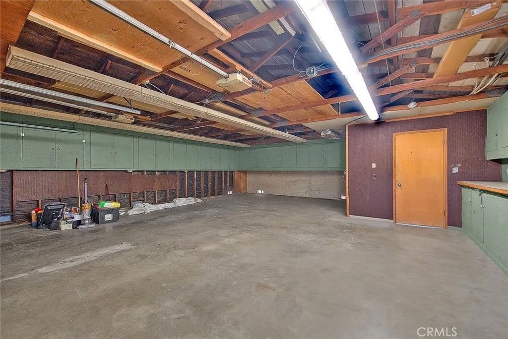 Fantastic Mid-Century home with HUGE detached oversized garage (approximately 900 sq ft) that could have possible ADU potential! (Buyer must verify) Located in the desirable City of Upland this home enjoys 3 bedrooms, 1 1/2 bathrooms, a spacious living room with rock fireplace and a sizeable family room with a second fireplace. High ceilings in the entertaining spaces of the home create an inviting and open atmosphere. For those who love mid-century architecture this home is sure to please, it showcases fabulous windows throughout that bring in an abundance of natural light, built-ins that offer wonderful storage right as you enter with an oversized closet, the hallway boasts linen cabinetry, off the kitchen there is large bank of cabinets that could be used as pantry/or other storage needs and there is additional storage near the laundry area and 1/2 bathroom. There are shutters in almost every room that allow for privacy when not enjoying the daylight or sunny times of the day. The kitchen has a charming brick accent wall, plenty of counter space to work, double ovens, electric cooktop and opens to the family room which also features space for dining. Side patio offers an outdoor space to enjoy and mature trees on the property create a private setting for this wonderful property. The garage is IMPRESSIVE, with so many options! If home business needs require extra storage or work space this garage will meet those needs! Extensive built-ins, work counters, plus an enclosed additional storage room within the garage, SO MUCH SPACE. Conveniently located just a short drive from the 10 freeway. Downtown Upland with its variety of unique eateries and shopping is also just a quick drive away. Another benefit of Upland is the gorgeous mountain back-drop it offers along with the charming mountain village of Mt Baldy, a convenient getaway to nature and the nearby mountains.