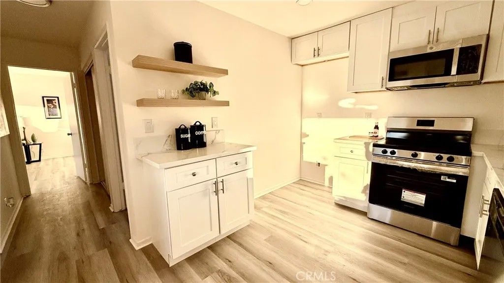 Welcome to 412 E Newmark Ave Unit E a fully remodeled 2-bedroom, 2-bath condo offering 1,044 sq ft of modern living in the heart of Monterey Park. Every detail of this home has been thoughtfully updated, featuring brand-new flooring, contemporary fixtures, recessed lighting, and a sleek open-concept kitchen with quartz countertops, custom cabinetry, and stainless-steel appliances. Both bathrooms have been beautifully upgraded with designer tile, new vanities, and modern finishes, creating a fresh, move-in-ready space. Located in a secure gated community, this desirable corner-unit condo offers added privacy with only two shared walls and includes two assigned parking spaces one covered with convenient overhead storage. The community features low HOA fees of just $170 per month, which include access to a sparkling pool, grounds maintenance, water, trash, and fire insurance exceptional value for the area. Enjoy close proximity to Atlantic Times Square, Monterey Park Mall, top dining, shopping, and parks, with easy freeway access (I-10, I-710, SR-60) putting Downtown LA just 15 minutes away. A rare opportunity combining modern upgrades, low-maintenance living, and a vibrant community lifestyle in one of Monterey Parks most desirable neighborhoods.