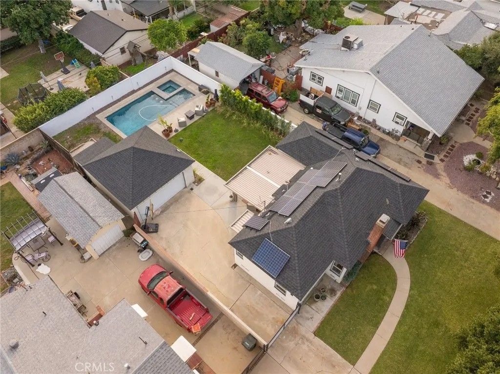 Rosewood Court Historic neighborhood living at its finest. This beautifully updated single-story POOL HOME blends timeless character with modern upgrades, PAID OFF SOLAR offering comfort, charm, and an inviting layout ideal for both everyday living and effortless entertaining. From the moment you arrive, the homes curb appeal shines through with its classic architectural lines, manicured lawn, beautiful trees and welcoming front porch. Inside, youre greeted by original hardwood floors, abundant natural light, and a warm, thoughtfully designed interior. The spacious living room features a cozy fireplace and flows seamlessly into the dining area, creating an open and welcoming environment. The newly remodeled kitchen is a true standout, complete with custom cabinetry, quartz countertops, a farmhouse sink, modern fixtures, upgraded lighting, tile backsplash and ample storage. Its clean, contemporary style blends beautifully with the homes historic character, offering the perfect balance of old-world charm and modern function. The bedrooms are generously sized and filled with natural light, while the updated bathroom showcases a dual-sink vanity, designer finishes, and a sleek walk-in shower. Every detail has been carefully curated to enhance comfort and style. The laundry area is located inside the home for convenience. Step outside to your own private backyard retreat. The expansive outdoor space features a heated in-ground pool and spa, lush landscaping, block walls for privacy and storage shed making it perfect for year-round enjoyment. A large covered patio provides a fantastic area for outdoor dining, lounging, or hosting gatherings, and the detached garage offers excellent storage or potential future use. This home also includes fully paid-off solar, providing valuable energy savings and efficiency, newer HVAC, dual pane windows, upgraded electrical panel, original wood floors, plaster walls, ample parking, new driveway gate and much much more! Located on a quiet, tree-lined street in one of Ontarios most cherished historic neighborhoods, this home offers a rare combination of character, updates, and lifestyle. Close to parks, schools, shopping, and downtown amenities, its a place where classic charm meets modern living.
