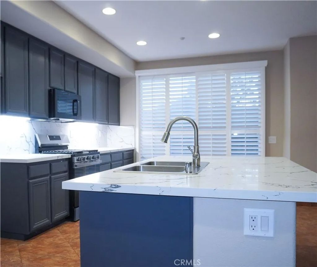 Move-in-ready 5-bedroom, 4-bath home with 3-car garage in the gated Tiburon community. Approx. 2,999 square ft with one bedroom and full bath on the main level. Kitchen features quartz countertops, island, and walk-in pantry, opening to the family room with fireplace and backyard access. Upper level includes additional bedrooms, a loft, and a laundry room. The primary suite offers dual vanities, a makeup station, soaking tub, walk-in shower, and two walk-in closets. Backyard features a fireplace, outdoor cooking area, pavers, and concrete hardscape. Interior features include tile flooring downstairs, vinyl flooring upstairs, large baseboards, and a new range. Low-maintenance front yard with artificial turf. Community amenities include a pool, playground, walking paths, and volleyball and basketball courts. Located near schools, parks, shopping centers, and local universities.