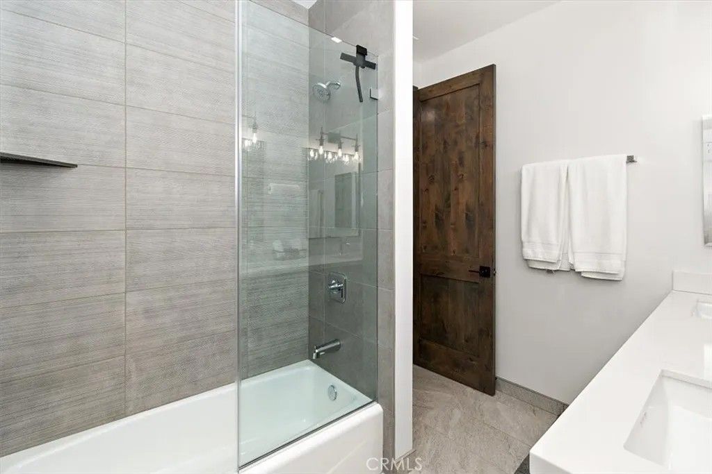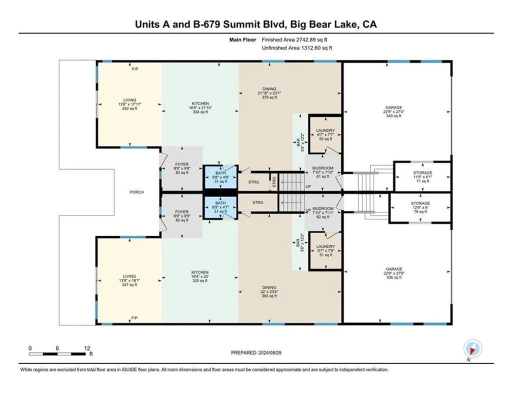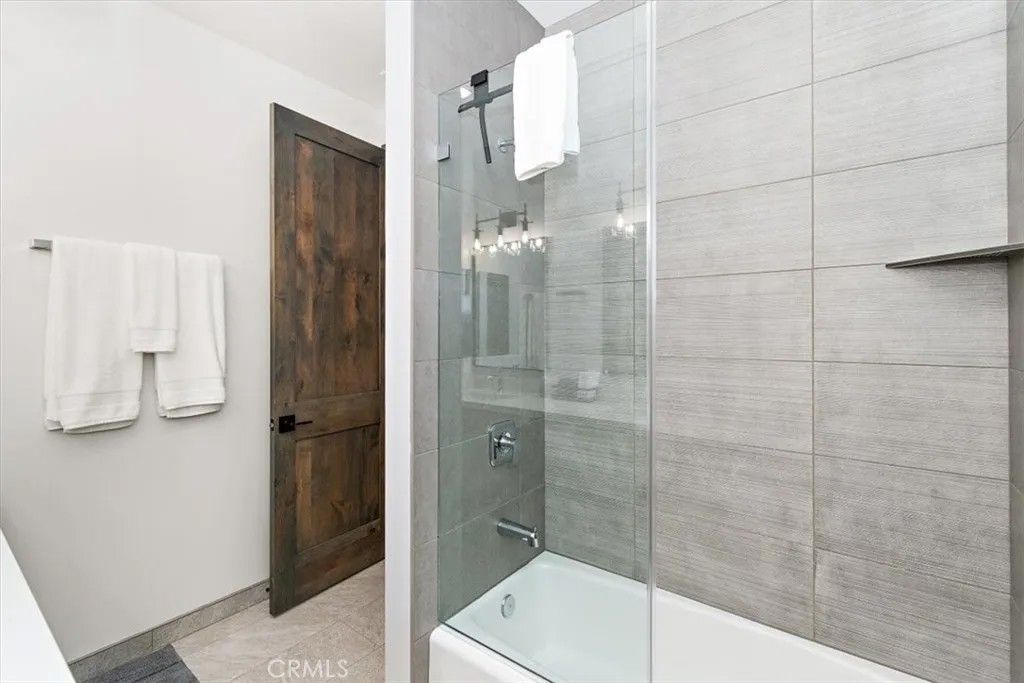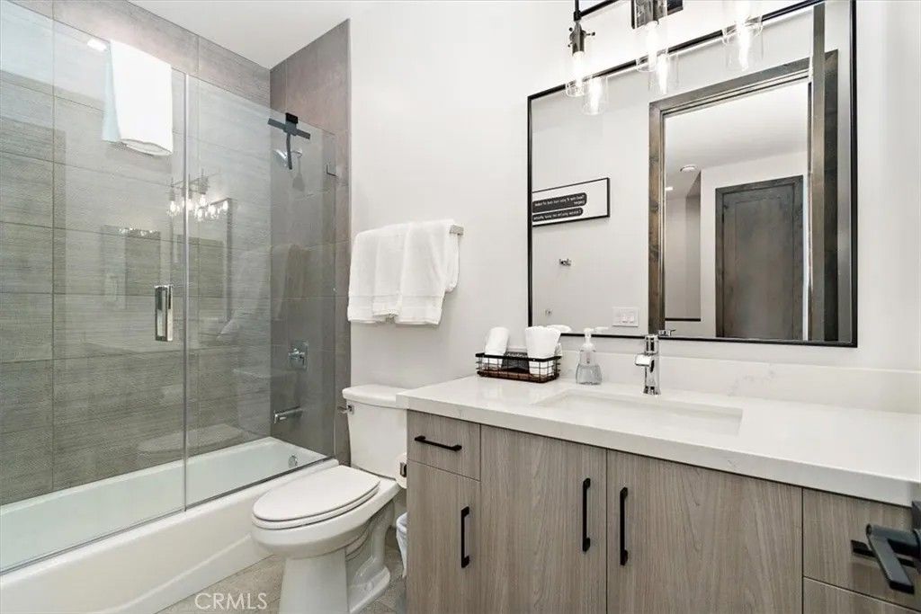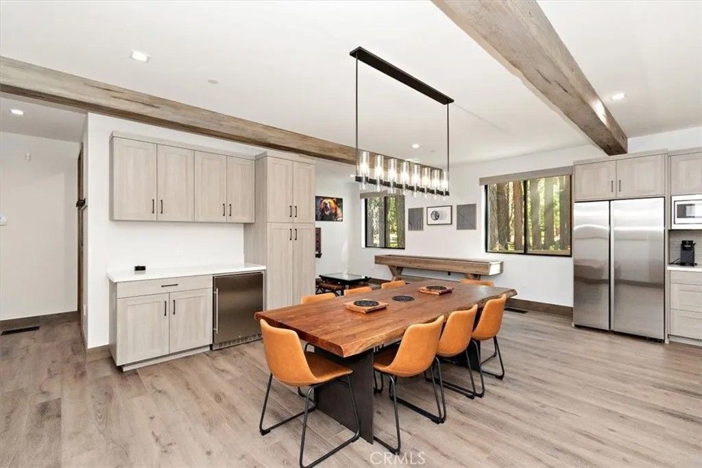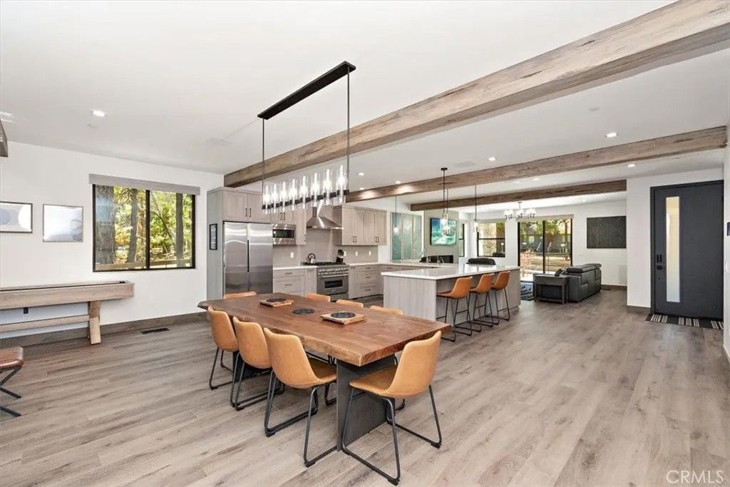 LOCATION, LOCATION, LOCATION! This stunning, modern, brand new single family residence laid out in versatile duplex fashion is only a 5 MINUTE WALK from Snow Summit Mountain Resort! Able to be split into multi-units, use it for income-producing vacation rentals, live in one and rent the other, or use them both for yourself and family; the possibilities are endless! The open floor plan blends game room, dining, and living room and has something for everyone - shuffleboard, electronic gaming table, cozy fireplace and oversized large screen TV, and a gourmet kitchen complete with custom cabinets, sleek quartz countertops, high-end stainless steel appliances, and reverse osmosis water filtration. In addition, this custom designed home features separate, dedicated central heating and air conditioning systems for each unit, ensuring year-round comfort. Both units feature dual primary suites, each with its own en-suite bathroom, ensuring ample space and privacy. As well, both sides are equipped with touchscreen smart units and all rooms have motorized shades and one touch light control. Each unit has an oversized 2-car attached garage with epoxy-coated floor, and ample, lockable storage, commercial-grade tankless water heaters and universal EV charging stations installed. Experience the perfect blend of modern amenities and mountain charm in this exceptional duplex, masterfully designed and no expense spared to cater to your every need and to surround you in comfort and luxury.