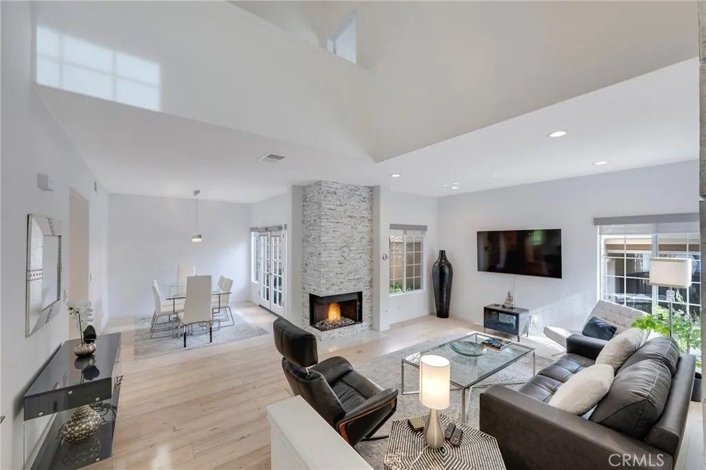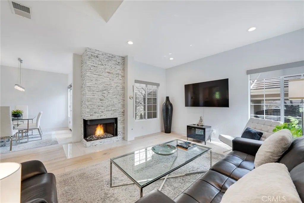 Welcome to this incredibly charming and beautifully updated townhome located behind the gates of Braemar. By far one of the best locations with oversized yard perfect for entertaining. From the moment you walk up to the gorgeous entry, you are greeted with a lovely courtyard with a quiet seating area and lovely landscaping. Enter the front door and there is stunning light wood flooring and modern upgrades everywhere. There are 2 fireplaces, one in formal living room and one in family room. Both have a custom stone facade extending all the way to the high ceiling. The kitchen just off the family room is completely updated with custom backsplash and counters and all stainless appliances. Truly a gourmet kitchen of your dreams. All bathrooms have been remodeled with gray and white finishes. Master suite has vaulted ceilings and a cozy seating corner overlooking your private, beautifully landscaped backyard. Pure privacy backing to a beautiful forest backdrop at the base of the Bowfield Trailhead. HOA has a sparkling pool and spa along with sauna. This is one that dreams are made of.