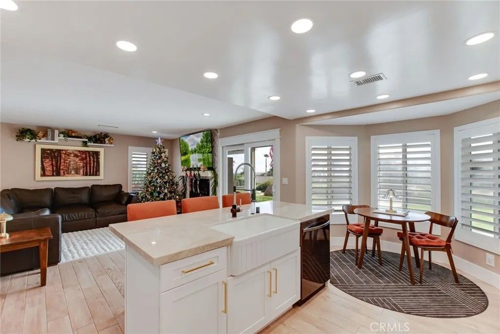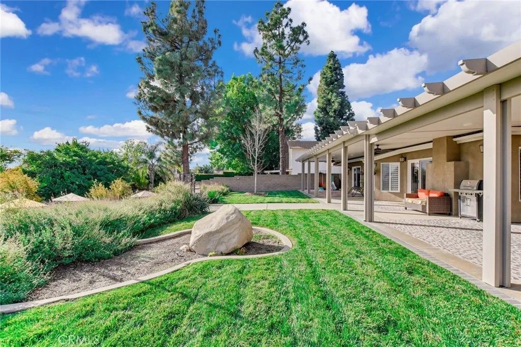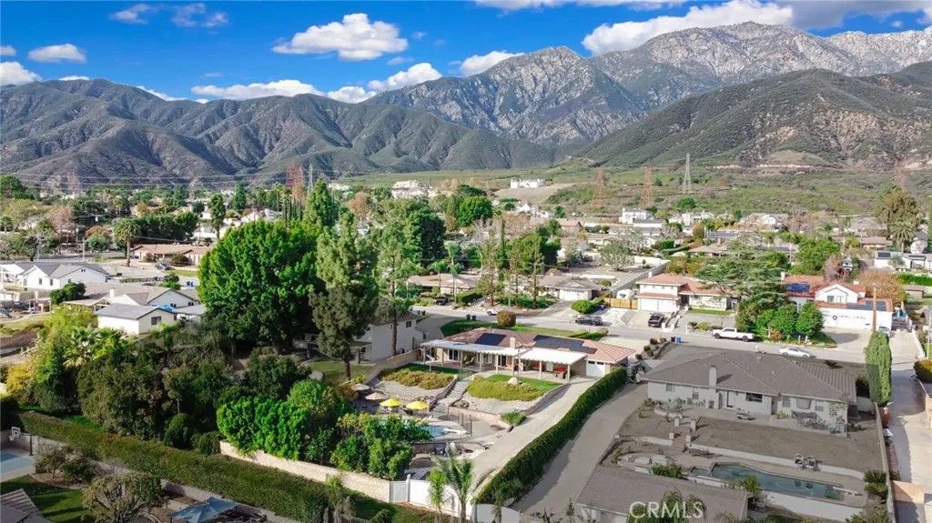 The La Senda Foothill Retreat Perched in the coveted Alta Loma foothills with sweeping city light and mountain views, this impeccably renovated single-story residence delivers refined craftsmanship, thoughtful design, and resort-style outdoor living on nearly half an acre of private grounds. The interior has been fully reimagined with premium finishes throughout. The chefs kitchen, completed in October 2023, showcases shaker-style cabinetry, rare Taj Mahal natural stone slab countertops, a custom marble mosaic backsplash with brass accents, farmhouse sink, Kraus commercial faucet, and Samsung black stainless steel smart appliances. Italian porcelain wood-look tile flows seamlessly throughout, complemented by new interior doors, custom craftsman casings, wainscoting, upgraded baseboards, and fresh designer paint. The main living space is anchored by a dramatic marble fireplace with a custom cement wood-look mantle. A custom fitted office features shaker cabinetry and Taj Mahal quartzite countertops, echoed in hallway display and storage cabinetry for continuity and balance. Both bathrooms have been fully renovated. The primary suite offers a spa-inspired retreat with a glass-enclosed honed marble shower, bench seating, built-in alcove, shaker cabinetry, quartz countertops, and a professionally designed custom walk-in closet. The guest bath includes a cast-iron tub, porcelain tile, shiplap accent walls, and quartz finishes. The laundry room continues the luxury theme with custom cabinetry and quartz countertops. Upgrades include copper plumbing throughout, a new 50-gallon water heater, Pure Again whole-house water filtration system, hardwired security cameras, recessed custom shutters, solar panels, Tesla charging stations, epoxy garage floors and new garage doors with openers. Outdoors, the private resort-style backyard maximizes the expansive lot with a sparkling saltwater pool and spa, multiple patios, a fire pit, and covered outdoor living beneath an Alumawood patio with TV and ceiling fans. Mature landscaping surrounds a meticulously planned orchard with avocado, citrus, fig, pomegranate, apple, kumquat, and moresupported by a water-conserving drip system for nonstop seasonal fruit production. Magnificently maintained and thoughtfully upgraded, this exceptional home offers luxury living, breathtaking views, and a tranquil foothill settingan extraordinary opportunity in one of Rancho Cucamongas most desirable neighborhoods.