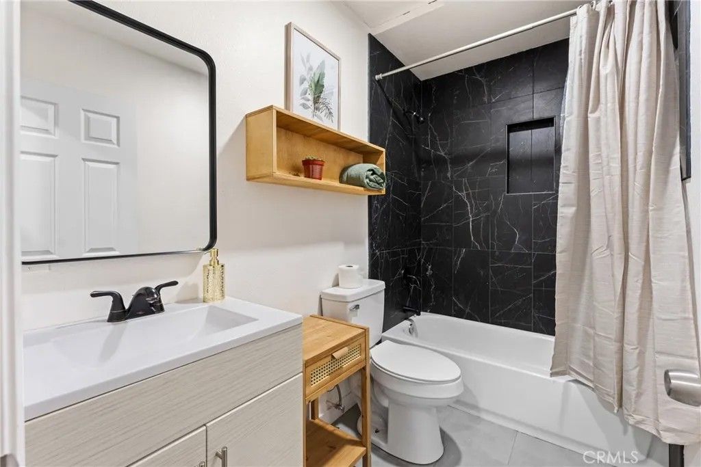 Located minutes from Lake Gregory, this remodeled Crestline home features a thoughtfully designed two bedroom, two bath layout with numerous recent upgrades. The interior offers new flooring, recessed lighting, updated fixtures, and fresh interior and exterior paint. The kitchen and bathrooms have been fully renovated with modern finishes including New Deck The open concept main level seamlessly connects the living, dining, and kitchen areas, extending to a deck that provides additional outdoor space for dining or relaxing. The property sits above street level and is accessed by a staircase from the parking area, offering an elevated feel and added privacy.