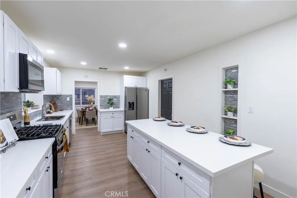Turnkey beautifully remodeled home in North San Bernardino on large corner lot, 4 bedrooms, 2 bathrooms, and oversized bonus room that can easily be converted into and ADU. This home offers space, comfort, and modern upgrades throughout. Featuring a large kitchen with quartz countertops, ample cabinetry, and a functional layout perfect for everyday living and entertaining. The bathrooms have been fully remodeled, complemented by new flooring and fresh interior and exterior paint that give the home a clean, contemporary feel. Enjoy gatherings in the spacious living room and separate dining room, ideal for both relaxing and hosting. Enjoy peace of mind with major system upgrades, including a new roof and all new windows installed in 2021, newer water heater, and gas line. Conveniently located near the 210 Freeway and Arrowhead Country Club, providing easy access for commuting, shopping, entertainment and dining.