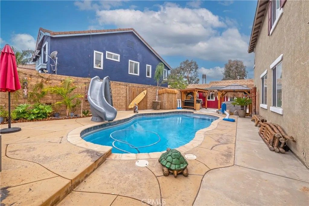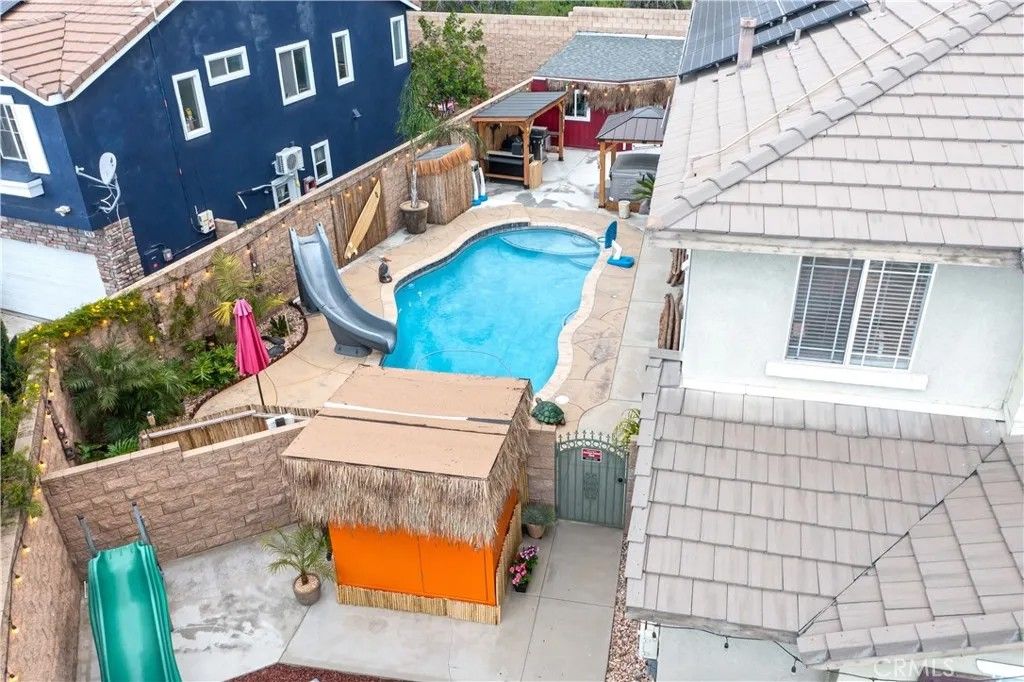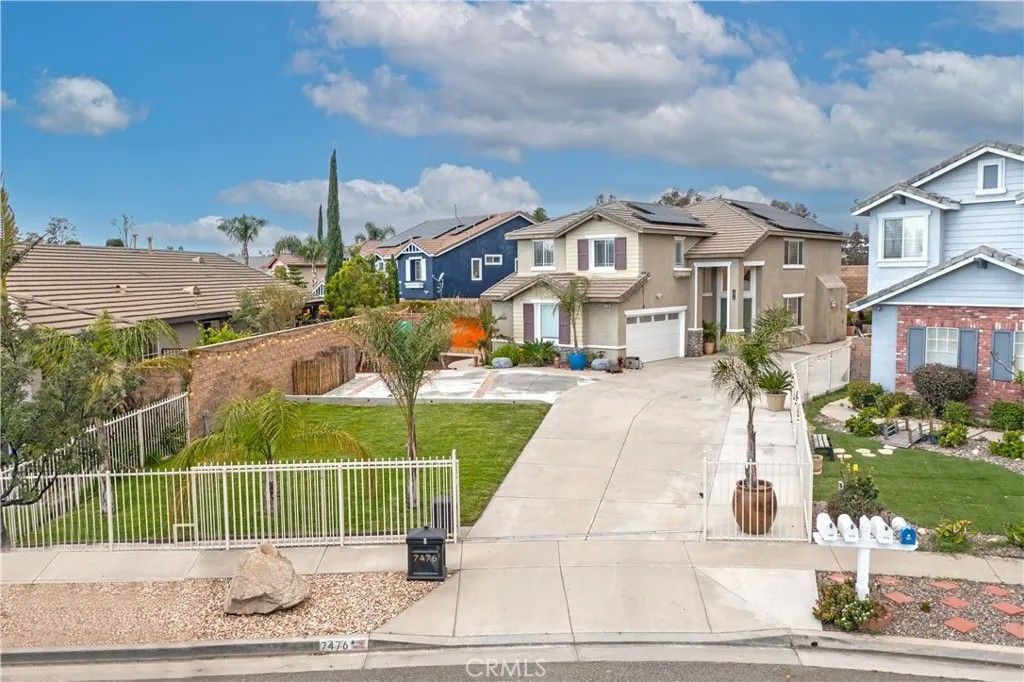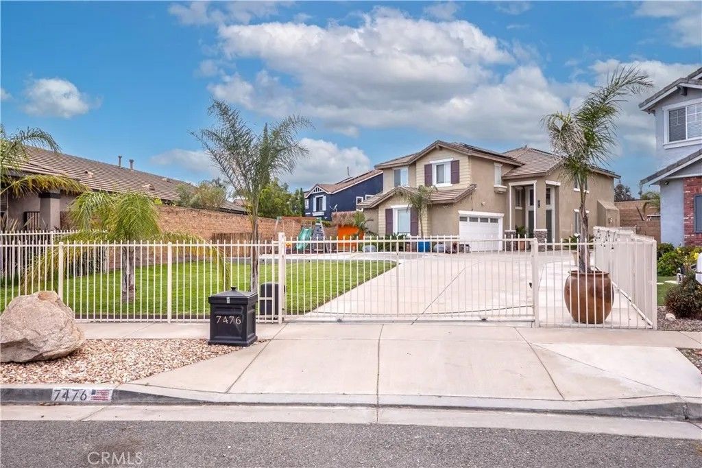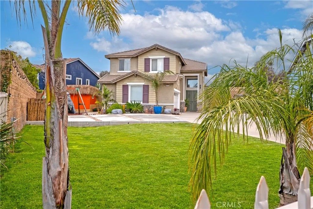 Welcome to a private estate in the heart of Rancho Cucamonga offering luxury, privacy, and resort-style living. Set behind a remote-access gate with a long private driveway, this expansive property is designed for both everyday comfort and entertaining. The grounds are surrounded by over a dozen mature tropical palm trees, creating a serene, resort-like setting. Outdoor features include RV parking, a childrens playground, a sparkling pool, a full-size outdoor bathroom, and a BBQ gazebo equipped with electricity and waterideal for hosting gatherings and enjoying the Southern California lifestyle. Inside, the home features a grand living room with soaring ceilings and Spanish-style tile flooring. The open-concept layout flows into a recently remodeled oversized gourmet kitchen with sleek countertops, stainless steel appliances, LED lighting, and abundant cabinetry. This turnkey two-story home offers five bedrooms, a spacious upstairs loft, and a versatile main-level room ideal for an office or guest space. The primary suite includes a private bathroom and walk-in closet. Additional highlights include solar panels, an attached two-car garage with epoxy flooring, and a prime location near Victoria Gardens, shopping, dining, major freeways, and within the desirable Etiwanda School District.
