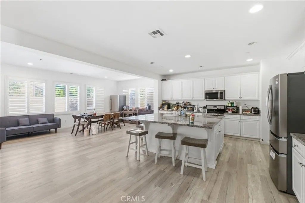 Welcome to this stunning 2013-built home located in the prestigious gated community of the Enclave in Eastvale. Offering approximately 3,291 Sq ft of thoughtfully designed living space, this residence features 6 bedrooms and 3.5 bathrooms, ideal for multi-generational families or those seeking versatile living areas. The spacious open-concept living room and kitchen are perfect for modern living and entertaining. A large marble island anchors the kitchen, providing ample space and endless enjoyment for the culinary enthusiast. The homes also features wood blinds throughout, adding an elegant touch to the interior. A desirable main-floor bedroom with a half bath offers flexibility as a guest room, home office, or private suite. Upstairs, the primary suite includes a walk-in closet, soaking tub, separate shower, and dual vanities for a spa-like retreat. Fully paid Solar Panels System, dual-pane energy-efficient windows and LED lightings significantly reducing monthly electricity costs and providing environmentally friendly power generation. Highly rated school district and affordable HOA fees, making this home a smart choice for families. Well-maintained, turnkey condition, residents enjoy resort-style community amenities including a clubhouse, swimming pool, SPA, parks and walking paths. Conveniently located near shopping, dining, school, and CA-60, I-15 and SR-91 freeways.