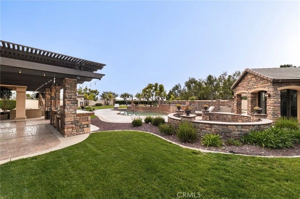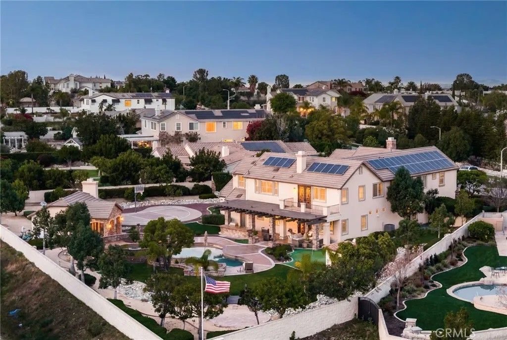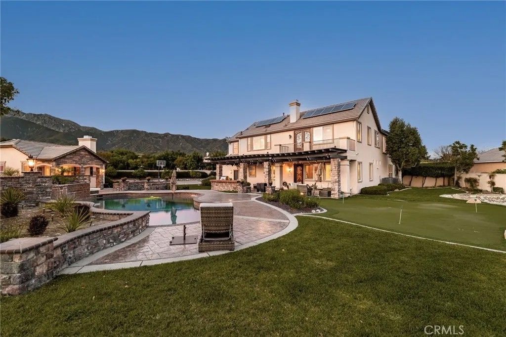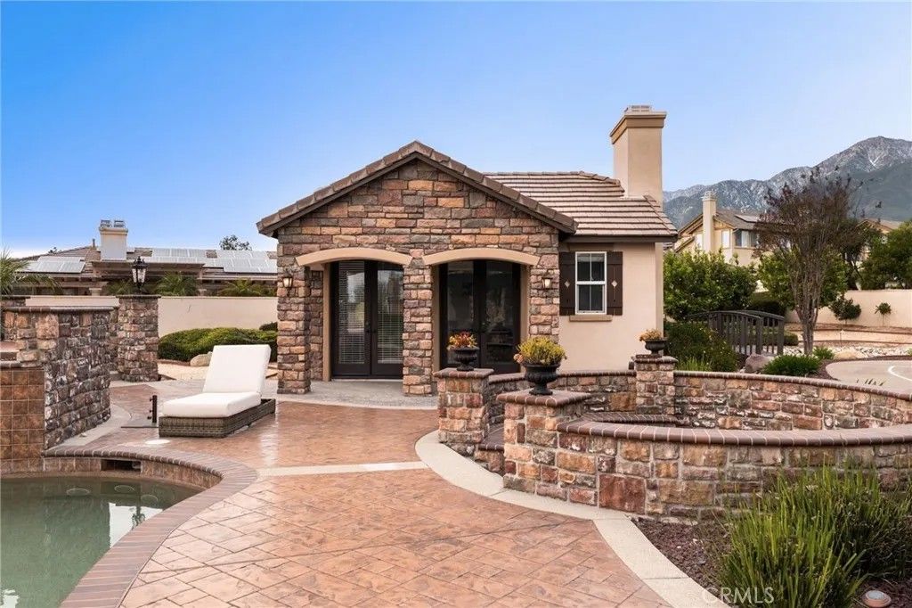 Welcome to an extraordinary estate in the prestigious Carriage Estates community of Rancho Cucamonga, set on nearly one acre of beautifully curated grounds and located within one of the citys most highly sought-after, top-rated school districts. Spanning approximately 6,000 square feet, this exceptional residence offers six spacious bedrooms and six and a half bathrooms, with every bedroom thoughtfully designed as a private en-suiteperfect for elevated comfort and multigenerational living. The home is further enhanced by owned, free and clear solar, delivering long-term energy efficiency and cost savings. From the moment you arrive, the home makes a lasting impression with a gated auto courtyard, a four-car garage, and a stunning stained and stamped concrete driveway. Inside, a grand foyer opens to an elegant formal living room and a refined executive office or retreat, setting the tone for the sophistication found throughout. The heart of the home is a beautifully updated kitchen featuring premium finishes, seamlessly connected to a warm and inviting great room and breakfast nook. A butlers pantry leads to the formal dining room, creating an ideal layout for both everyday living and upscale entertaining. A private downstairs bedroom with its own en-suite bath further enhances the homes versatility. Upstairs, the expansive primary suite is a true sanctuary, complete with a private retreat, balcony showcasing breathtaking mountain and city light views, dual walk-in closets, and a spa-inspired bathroom featuring a soaking tub, oversized shower, dual vanities with bidet toilets, and an additional flex space ideal for a gym, lounge, or secure room. Step outside to your own private resort. The backyard is designed for unforgettable gatherings, featuring a sparkling pool, sunken fire pit, putting green, basketball court, and a charming childrens playhouseall surrounded by mature landscaping that offers both beauty and privacy. A detached ADU/pool house provides exceptional flexibility, perfect for guests, extended family, or potential income opportunities. This is a rare opportunity to own a truly grand estate that effortlessly combines luxury, functionality, and lifestyleoffering every space and amenity a modern family could desire.