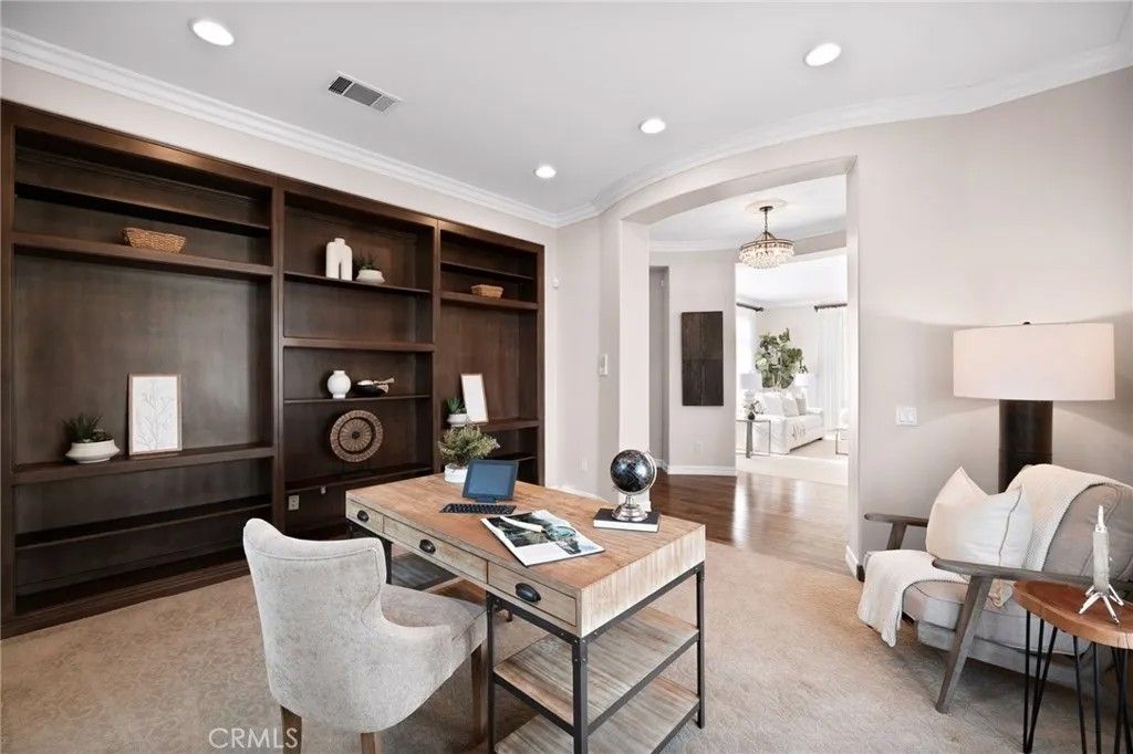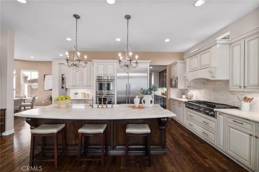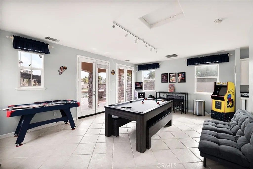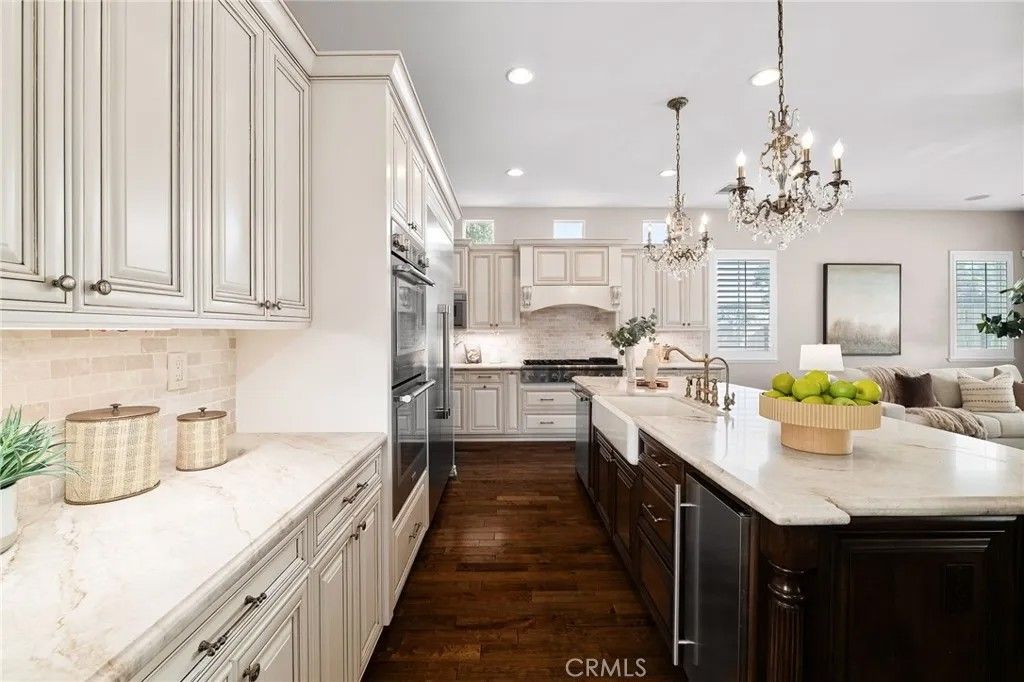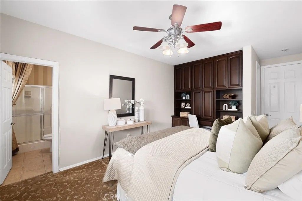 Welcome to an extraordinary estate in the prestigious Carriage Estates community of Rancho Cucamonga, set on nearly one acre of beautifully curated grounds and located within one of the citys most highly sought-after, top-rated school districts. Spanning approximately 6,000 square feet, this exceptional residence offers six spacious bedrooms and six and a half bathrooms, with every bedroom thoughtfully designed as a private en-suiteperfect for elevated comfort and multigenerational living. The home is further enhanced by owned, free and clear solar, delivering long-term energy efficiency and cost savings. From the moment you arrive, the home makes a lasting impression with a gated auto courtyard, a four-car garage, and a stunning stained and stamped concrete driveway. Inside, a grand foyer opens to an elegant formal living room and a refined executive office or retreat, setting the tone for the sophistication found throughout. The heart of the home is a beautifully updated kitchen featuring premium finishes, seamlessly connected to a warm and inviting great room and breakfast nook. A butlers pantry leads to the formal dining room, creating an ideal layout for both everyday living and upscale entertaining. A private downstairs bedroom with its own en-suite bath further enhances the homes versatility. Upstairs, the expansive primary suite is a true sanctuary, complete with a private retreat, balcony showcasing breathtaking mountain and city light views, dual walk-in closets, and a spa-inspired bathroom featuring a soaking tub, oversized shower, dual vanities with bidet toilets, and an additional flex space ideal for a gym, lounge, or secure room. Step outside to your own private resort. The backyard is designed for unforgettable gatherings, featuring a sparkling pool, sunken fire pit, putting green, basketball court, and a charming childrens playhouseall surrounded by mature landscaping that offers both beauty and privacy. A detached ADU/pool house provides exceptional flexibility, perfect for guests, extended family, or potential income opportunities. This is a rare opportunity to own a truly grand estate that effortlessly combines luxury, functionality, and lifestyleoffering every space and amenity a modern family could desire.