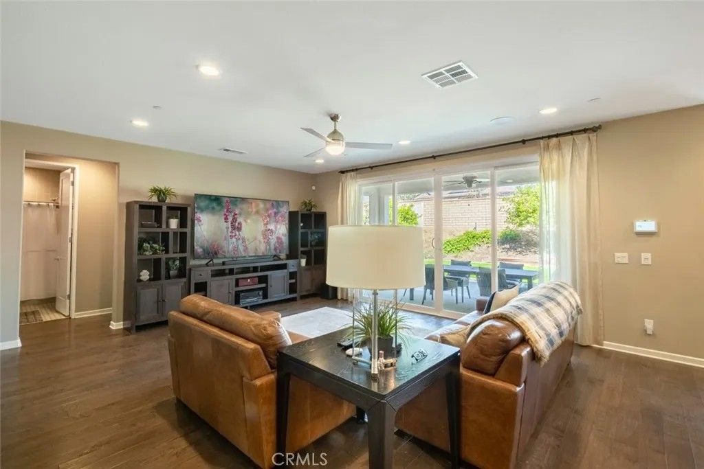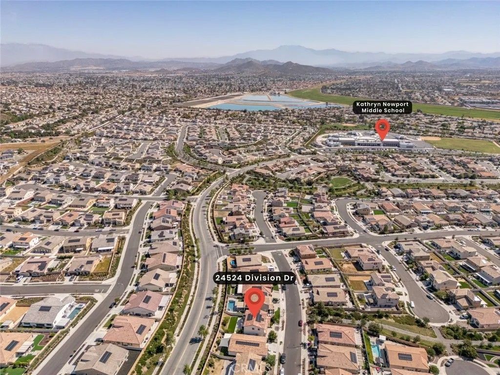 Welcome to 24524 Division Drive, Menifee, CA 92587 A spacious and beautifully maintained two-story home offering 5 bedrooms, 3 bathrooms, and approximately 2,921 sq ft of comfortable living space. Designed with both functionality and style in mind, this newer construction home features an open-concept layout enhanced by recessed lighting, ceiling fans, and abundant natural light throughout. The modern kitchen is a true centerpiece, complete with a large island, walk-in pantry, and ample cabinetry, perfect for everyday living and entertaining alike. Upstairs, enjoy a versatile loft space ideal for a home office, media room, or additional lounge area. The expansive primary suite offers a private retreat with a walk-in closet, dual sinks, soaking tub, separate shower, and a privacy toilet enclosure. A dedicated laundry room adds convenience to the well-designed floor plan. The backyard features a covered patio and beautifully finished outdoor space with a combination of concrete and grassy areas, perfect for gatherings or relaxing evenings at home. Additional highlights include owned solar, a 3-car attached garage, and access to desirable HOA amenities including a pool, spa, barbecue and outdoor cooking areas, picnic spaces, playground, tennis courts, hiking trails, and a recreation room. A wonderful opportunity to own a move-in ready home in a vibrant and amenity-rich community.