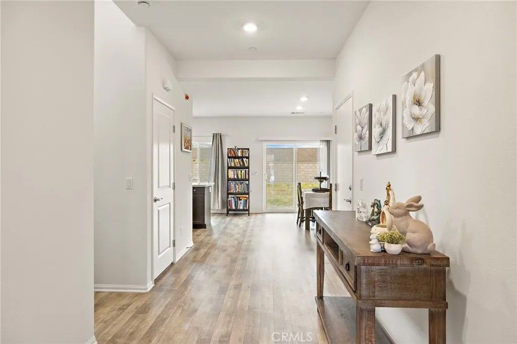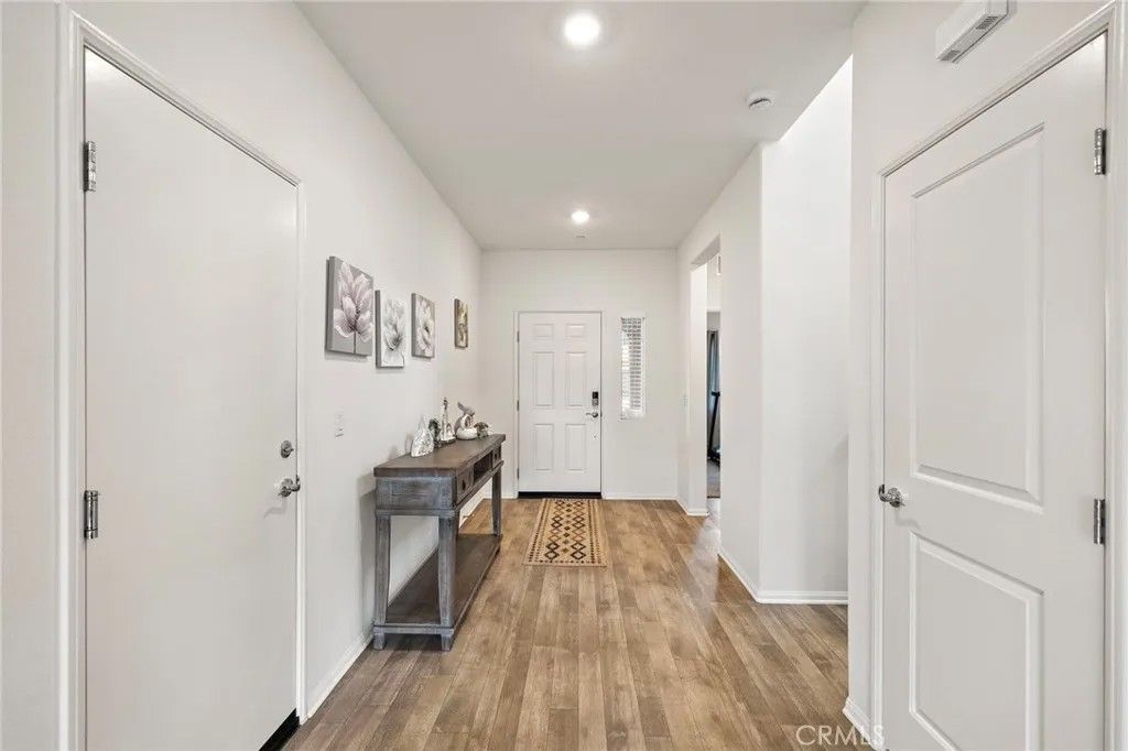 Welcome to this beautifully built 2024 home in the rapidly growing community of Winchester, where modern design meets everyday comfort. This Thoughtfully designed two-story home offers a bright open-concept floor plan, ideal for both entertaining and daily living. The spacious kitchen serves as the heart of the home, featuring a large island with seating, quartz countertops, stainless steel appliances, and upgraded stained maple cabinetry. High ceilings, recessed lighting, and luxury vinyl plank flooring. The main level includes a convenient bedroom, perfect for guests. Upstairs, you'll find generously sized bedrooms, a versatile loft space ideal for a home office or additional living area, and a spacious primary suite complete with a walk-in closet and dual sink vanity. This home is energy-efficient, with a leased solar system (buyer to assume lease) and tankless water heater, 2 car garage is pre-plumbed for an electric car. Additional upgrades include an energy-efficient ERV (Energy Recovery Ventilation) system. The low-maintenance backyard is designed for ease and functionality. Located near parks, shopping, and easy freeway access, this home offers the perfect blend of convenience and modern living.