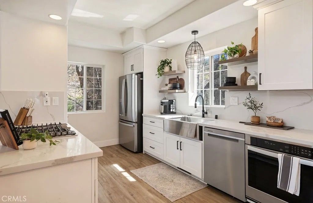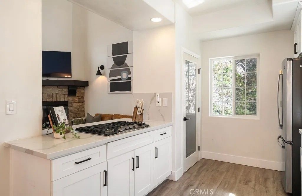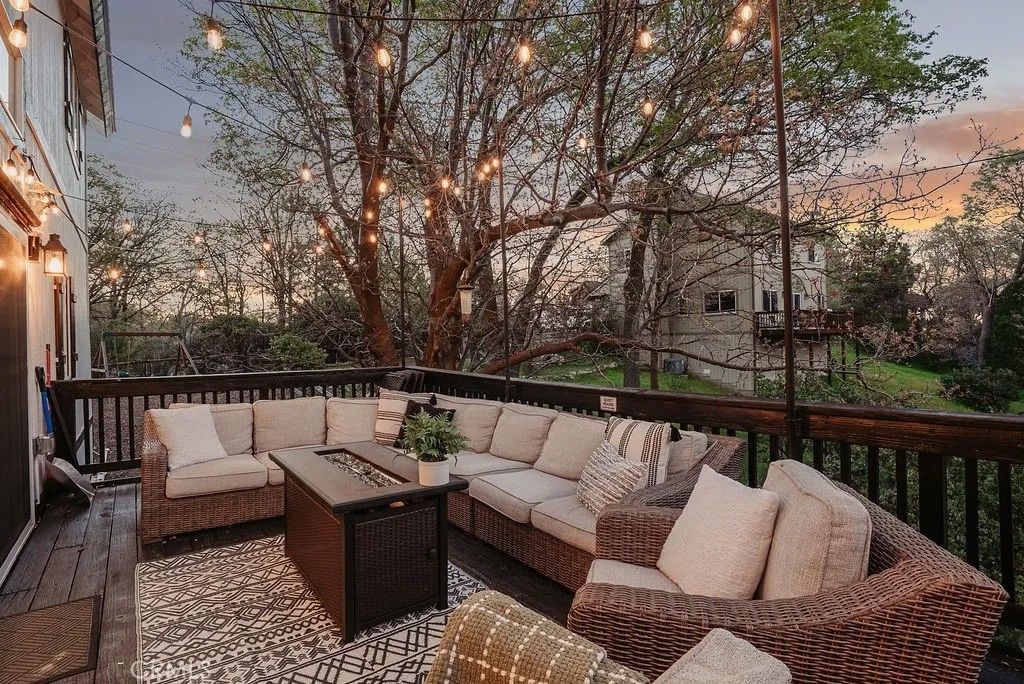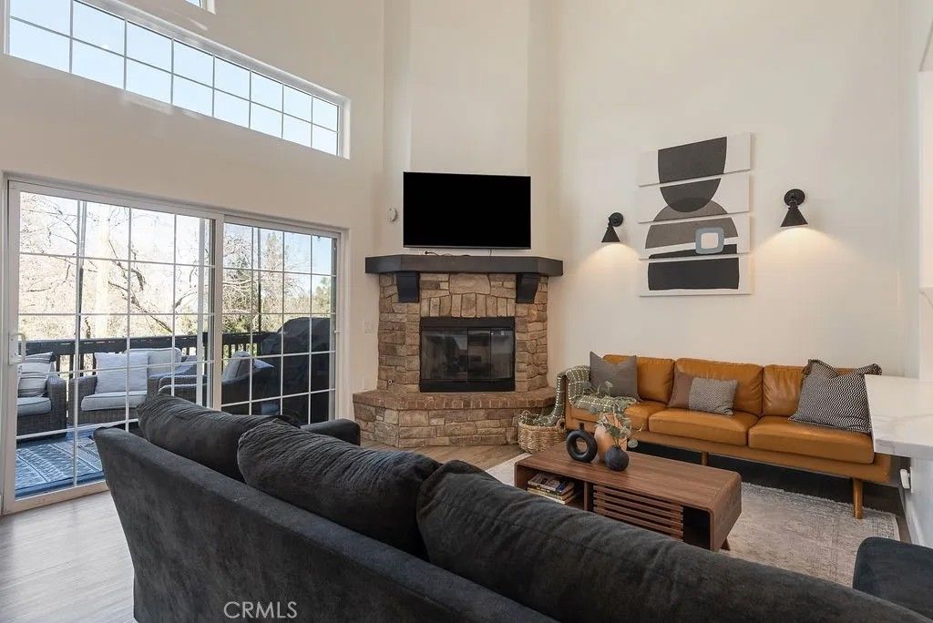 Tucked away in the scenic beauty of Lake Arrowhead, this fully-renovated 3-bedroom, 2-bathroom home offers the perfect blend of comfort, style, and mountain charmjust minutes from Lake Arrowhead Village and Lake Arrowhead Country Club. Step inside to a bright and airy living room featuring soaring vaulted ceilings and abundant natural light, creating a warm and welcoming atmosphere. Recent updatesincluding fresh interior and exterior paint, new flooring, and a beautifully renovated kitchen, new HVAC, tankless water heater, and natural gas generator - that powers the entire home! The functional layout is ideal for both everyday living and weekend escapes, with 2 bedrooms and 1 bathroom on the main level. Upstairs, a charming loft area just off the primary bedroom offers a flexible space perfect for a home office, reading nook, or private retreat. Outdoor living is where this home truly shines. Enjoy peaceful mornings or evening gatherings on the spacious back porch surrounded by serene tree-lined and mountain views. The level, fully landscaped lot is a rare find in the area and includes a fully fenced yard and a playground, making it an excellent option for families or those seeking a turnkey vacation property. The one-car garage has been thoughtfully converted into a game room, adding additional space for entertainment and relaxation. Whether you're looking for a full-time residence or a weekend getaway, this home delivers on lifestyle, location, and comfort. Located in Deer Lodge Park, no lake rights. STR permit currently in place and may be transferrable, buyers to conduct their own due diligence.