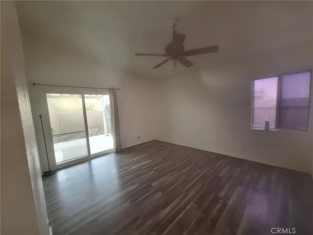 Charming Single-Story Home in Southridge - Move-In Ready with Solar! Welcome home to this beautifully refreshed 3-bedroom, 2-bathroom single-story residence in the desirable Southridge neighborhood of Fontana. Built in 1986 and thoughtfully updated throughout, this 1,109 sq ft gem sits on a generous 4000 sq ft lot and offers the perfect blend of comfort, modern finishes, and energy-efficient living thanks to its solar panels (installed 2023). Step inside to bright, open living spaces featuring brand-new luxury vinyl plank flooring that flows seamlessly from room to room. A large ceiling fan keeps the main living area cool and inviting, while oversized sliding glass doors bathe the home in natural light and open directly onto the relaxing backyard oasis. The updated kitchen boasts white cabinetry, granite-style countertops, a stainless steel dishwasher, double sink, and black electric range with overhead microwave, all overlooking the front yard for a cheerful vibe while you cook. Both bathrooms have been nicely remodeled: one features a spacious walk-in shower with stylish tile, built-in bench, and niche shelving; the other offers a full tub/shower combo with updated vanity and lighting. The bedrooms are generously sized with ample closet space and neutral tones, making them easy to personalize. Outside, the fully fenced backyard is a true highlight. Enjoy a large area of artificial turf bordered by attractive block retaining walls, a covered patio with sturdy columns, and plenty of concrete slab for dining, lounging, or play. The side yard provides extra storage and utility space, while the front offers classic curb appeal with a 2-car attached garage