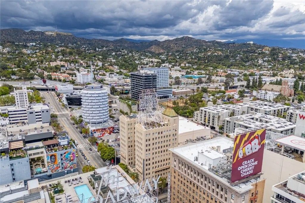 Hollywood & Vine loft living with the added advantage of Mills Act tax savingsoffering potential for significant annual property tax reduction, including estimated savings of approximately $2,000 to $3,000 per year due to its historic designation. This stylish 2-bedroom, 1.5-bath residence features a dynamic open-concept layout ideal for both everyday living and entertaining. The main level showcases a spacious kitchen with Viking stainless steel appliances, seamlessly flowing into the living area highlighted by soaring ceilings, newer wood flooring, and dramatic industrial windows that flood the space with natural light and frame sweeping city views. Upstairs, both bedrooms provide separation and privacy along with a full upgraded bathroom, while a convenient half bath is located on the main level. Additional highlights include in-unit washer and dryer, air conditioning, upgraded restrooms, and the rare inclusion of furnituremaking this a truly turnkey opportunity for buyers seeking style, flexibility, and long-term financial advantage........... Set in the iconic Hollywood & Vine intersection, this historic full-service loft building blends character, convenience, and lifestyle. Residents enjoy 24/7 doorman and security, valet parking, controlled access, and a rooftop deck featuring BBQ grills, fire pit, lounge seating, and panoramic views of the Hollywood Sign, Capitol Records, and DTLA skyline. The building is pet-friendly and professionally managed, offering a true lock-and-leave urban experience. Just outside your door, enjoy unmatched walkability to top dining, nightlife, Equinox, Trader Joes, and Metro access for seamless commuting. Moments from Runyon Canyon and major entertainment venues, this is an ideal opportunity for buyers seeking an energetic Hollywood lifestyle paired with historic charm and meaningful ongoing tax savings.