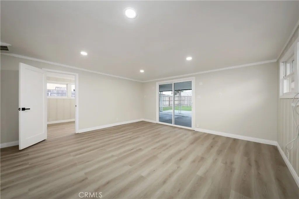 This beautifully remodeled 3-bedroom, 1-bath home offers 1,192 square feet of comfortable living on a generous 7,500 sq ft lot. The entire interior has been thoughtfully updated and the home has been fully repainted inside and out, making it truly move-in ready. A spacious family and entertainment room at the rear of the home opens directly to the large backyard, creating an ideal indoor-outdoor flow for gatherings and everyday living. The expansive yard, combined with convenient alley access, offers potential for an ADU or additional structure (buyer to verify), adding long-term flexibility and value. Additional highlights include a dedicated, oversized laundry room and a versatile layout that maximizes space and functionality. With modern upgrades, generous outdoor space, and future expansion potential, this home is an excellent first home for a growing family...Welcome home!