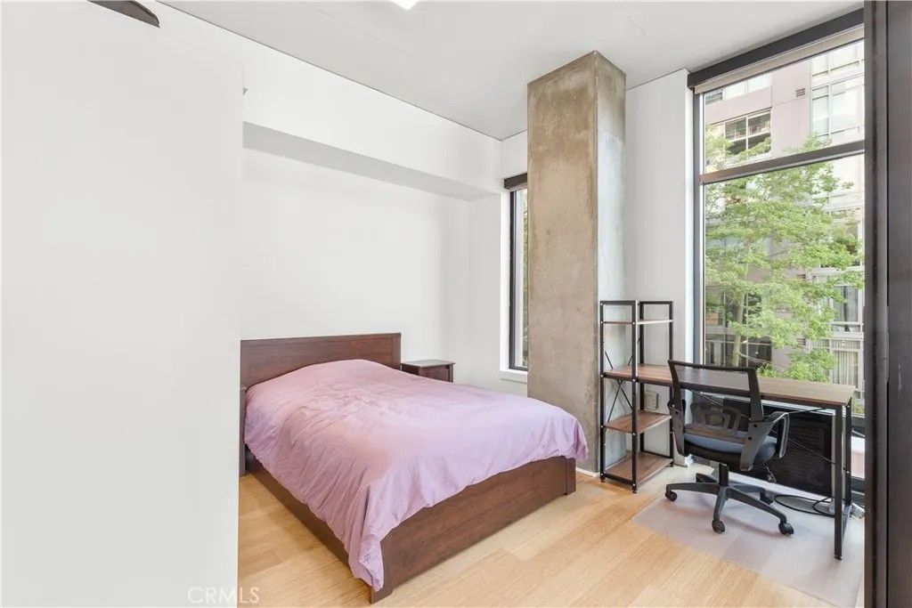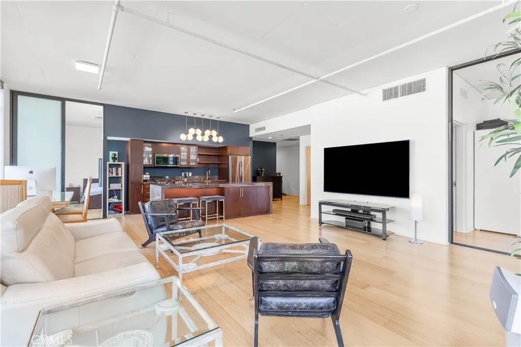 A rare corner residence offering sweeping Downtown Los Angeles skyline views through walls of floor-to-ceiling glass. Bathed in natural light, this refined designer unit features a grand entry, natural bamboo flooring, and one of the most desirable layouts in the building. The kitchen is thoughtfully designed with stone countertops, a substantial center island with custom accent lighting, and Samsung black stainless-steel appliances. Smart-home functionality includes Alexa-enabled lighting and motorized window shades throughout. A private corner balcony provides an ideal setting for morning coffee or evening wine. The residence includes premium first-floor parking with two spaces adjacent to the lobby, a dedicated EV charging station, and a private 5 x 8 storage room conveniently located by the elevator. Residents enjoy a tranquil fourth-floor amenity level with pool, spa, Viking grilling stations, lounges, and fire pit. Built in 2005, the Elleven offers 24-hour concierge and security in the heart of South Park. Starbucks is located beneath the building, with Whole Foods, Crypto.com Arena, and top dining destinations just moments away. Erewhon is expected to open nearby in 2027.