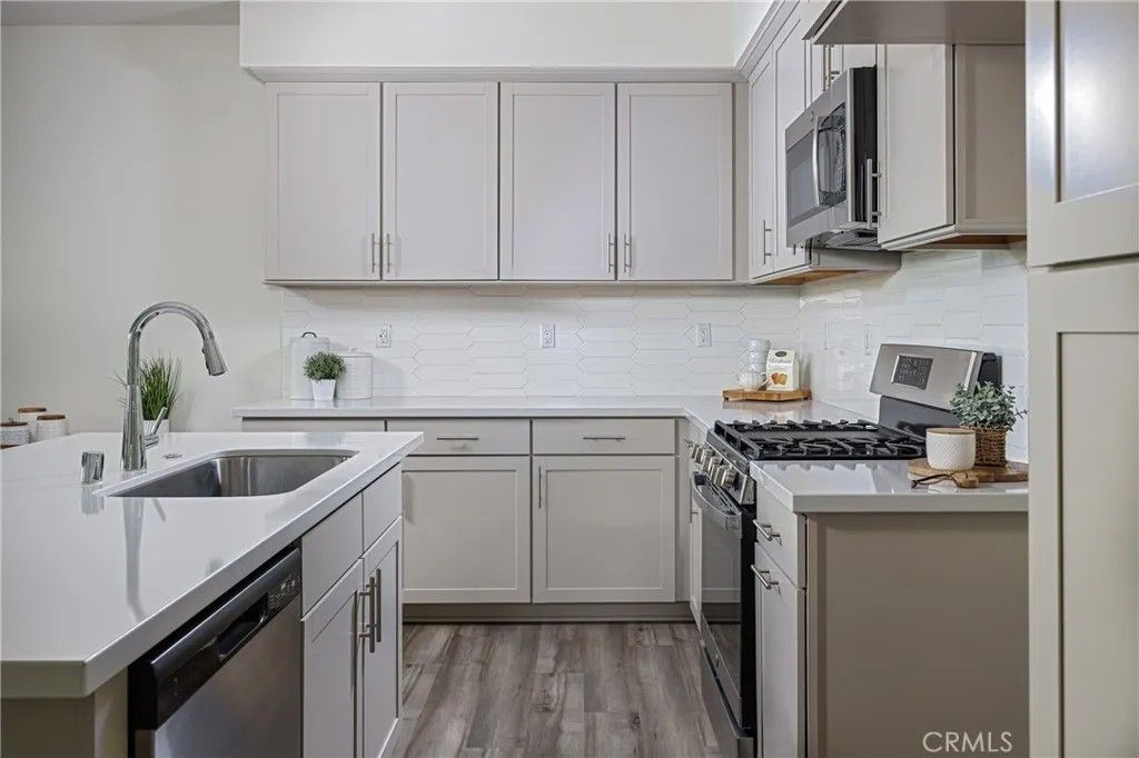 Welcome to this beautifully upgraded 2 bedroom, 2.5 bathroom townhome in the highly desirable gated community of Iron Ridge. This home offers modern upgrades, a spacious two-car garage, and an ideal layout designed for comfort and style. Step inside to luxury vinyl plank flooring throughout and a bright, open living space. The cozy family room is filled with natural light from multiple windows, creating a warm and inviting atmosphere. The chefs kitchen features shaker-style cabinets, quartz countertops, a custom backsplash, stainless steel GE appliances, and a large kitchen islandperfect for entertaining. Upstairs, both bedrooms provide comfort and privacy. The spacious primary suite boasts a large walk-in closet and an elegant ensuite bathroom with quartz countertops, a double vanity, and an oversized shower creating a spa like experience. The secondary bathroom is beautifully finished with quartz countertops, stylish upgraded fixtures, and a tub/shower combination. For added comfort, this home includes a QuietCool whole house fan and an energy-efficient tankless water heater. Enjoy resort-style living with exclusive HOA amenities, including a clubhouse, swimming pool, spa, parks, tot lots, tennis courts, barbecue areas, and picnic spots. Conveniently located near award-winning schools, Foothill Town Center, and Whiting Ranch Wilderness Park. Easy access to freeways and toll roads. Low property taxes and no Mello Roos make this an exceptional opportunity!
