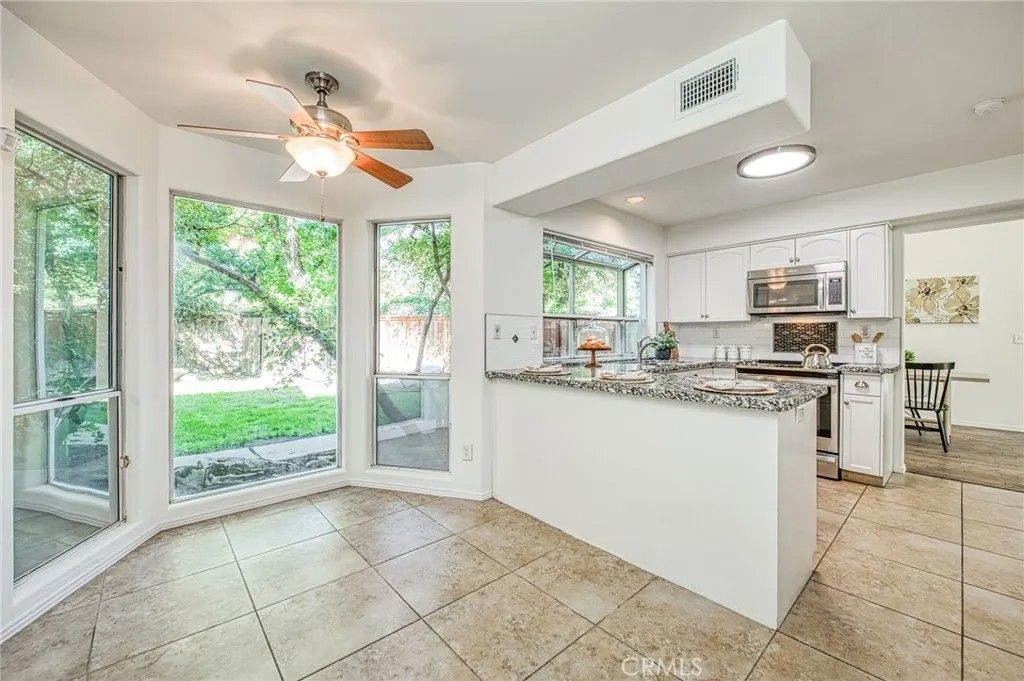 Looking for a home near Woodward Park? Welcome to this move-in-ready 3-bedroom, 2.5-bath home in the highly sought-after community of The Villas II at The Dominion. Perfect as a starter home or for those seeking a low-maintenance lifestyle, this stylish Wilson-built residence offers comfort, charm, and convenience. Upon entry, you'll be greeted by soaring vaulted ceilings, abundant natural light, and a cozy fireplace with an oversized mantle. The home has been freshly painted in neutral tones, creating a bright and welcoming atmosphere that complements any dcor. The formal dining area opens to a private side patio, ideal for indoor-outdoor living and entertaining. The kitchen features granite countertops, stainless steel appliances, and a cheerful breakfast nook with lovely backyard views. This south-facing corner lot backs to a lush greenbelt, offering extra privacy and no rear neighbors. Enjoy the beautifully landscaped backyard, complete with mature trees perfect for relaxing or hosting guests. A large solar system helps keep your energy costs to a minimum, adding to this home's appeal and efficiency. Upstairs, the primary suite welcomes you through double doors and includes a spa-like bathroom for your own private retreat. Located just minutes from Woodward Park, fantastic shopping and dining options, and within the award-winning Clovis Unified School District, this home truly has it all. Don't miss your chance-schedule your private tour today!