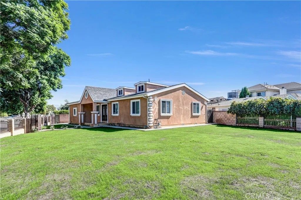 This beautiful 3 bedroom 2 bath home is perfectly positioned on a large corner lot with impressive curb appeal and expansive frontage. Designed for comfort and modern living this home features gleaming hardwood floors, sun filled interiors, and an open concept layout that's ideal for family gatherings and entertaining. The kitchen is complete with modern touches and an abundance of cabinets with center island integrating effortlessly to the living areas. Generous bedrooms offer plenty of space for rest and relaxation with modern bathrooms to add a touch of style and convenience. This home features a private gated entrance, beautifully maintained landscaping, and a two-car garage with additional driveway parking.