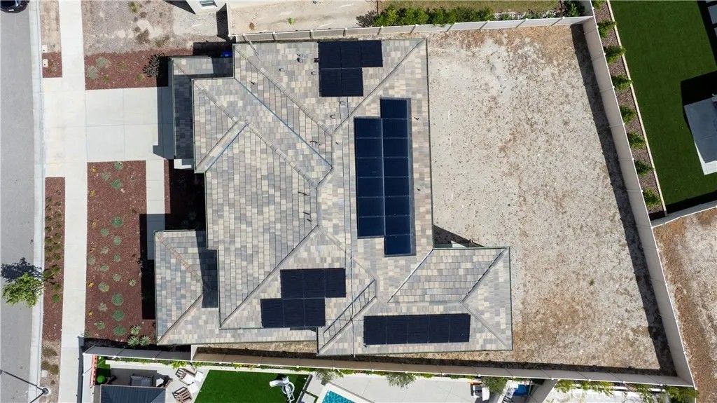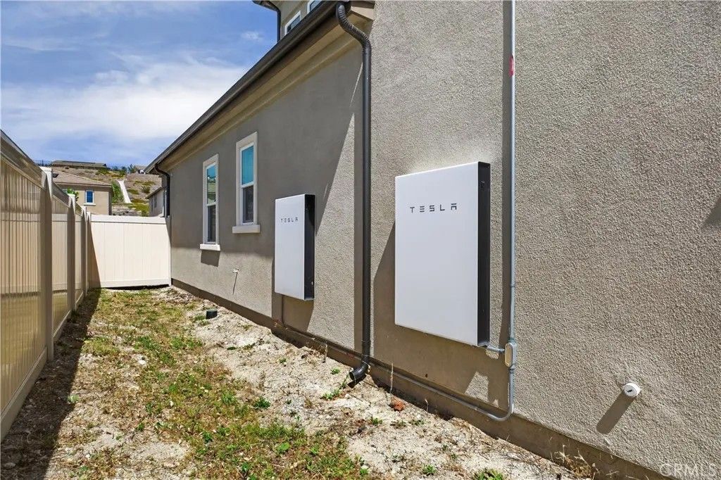 Hilltop Living in Skyline | Starling Plan 1 by Tri Pointe Homes | ~3,630 Sq. Ft. Situated on one of the largest usable lots in the Skyline community, this thoughtfully upgraded home offers rare space, views, and flexibility with a blank canvas backyard ready for a luxury pool or custom hardscape (design plans available). Smart Home & Energy Dual solar system (owned + leased) backed by two Tesla Powerwalls, whole-home water softener, and multi-stage kitchen filtration. Entertainment & Audio Seven 8" ceiling speakers in the living room plus two outdoor speakers on the covered patio. Full 360 perimeter camera coverage with integrated motion sensors. Exterior Full-roofline seamless gutter and downspout system. Fresh paint, new baseboards, and updated door casings throughout. A double height ceiling at entrance, bright and light first Floor Open-concept living with updated flooring and custom privacy blinds. Upgraded Caf Series appliances, quartz countertops, and a massive center island. Private guest bedroom with en-suite bath, plus two flex rooms (currently office and playroom).Second Floor Primary suite with an exclusive covered deck and elevated hillside views. Two additional oversized bedrooms. Large loft ideal as a second family room. Dedicated laundry room with premium washer/dryer included. Drywall finished garage, tankless water heater, and ready EV charger outlet. Community Resort-style pools, spas, cabanas, glass-enclosed fitness center, yoga studios, splash pad, and miles of hiking and biking trails at The Lookout and Basecamp. Minutes to the 14 Freeway and Skyline Ranch Plaza.
