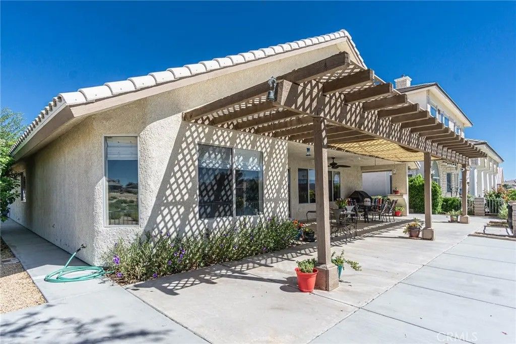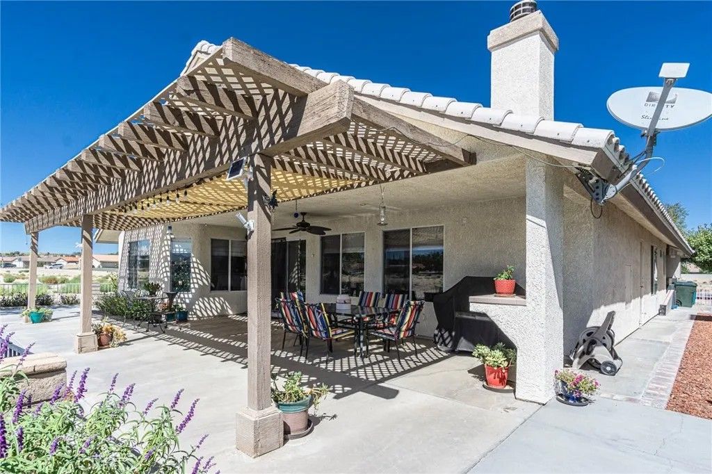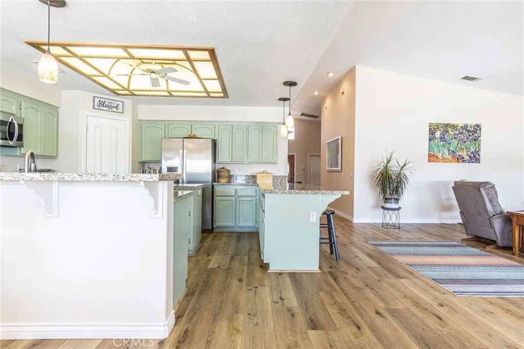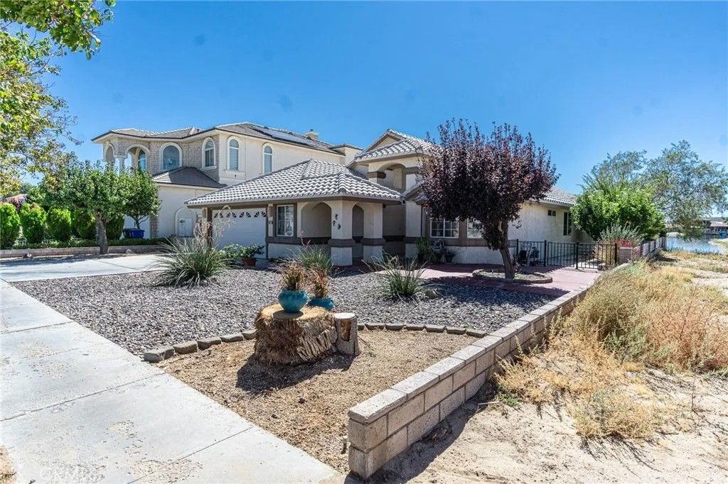 Welcome to waterfront living at its finest! This beautifully maintained 3-bedroom, 2-bath home in Helendale features an open floor plan perfect for modern living. The spacious family room boasts a cozy pellet stove and stylish flooring that flows throughout the home. The kitchen is a chefs delight with granite countertops, pendant lighting, a walk-in pantry, and a functional layout ideal for entertaining. Retreat to the primary suite featuring a luxurious garden tub, dual sinks, and ample closet space. Enjoy the convenience of an indoor laundry room, a central vacuum system, and a water softener. The garage includes a built-in workbench and plenty of storage. Step outside to your own private oasisan expansive patio area surrounded by fruit trees and direct access to the water with your own private dock. Whether you're enjoying morning coffee by the lake or hosting gatherings under the stars, this home offers it all. Dont miss this rare opportunity to live on the water in the desirable Silver Lakes community!