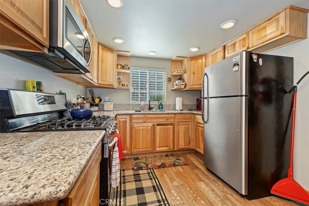 WELCOME TO YOUR DREAM HOME, FULLY FURNISHED AND READY TO MOVE IN! Just steps to Boulder Bay in beautiful Big Bear Lake. Offering 1134 sq ft of living space with central heating on a LARGE 14,000 sq ft lot. The owner spared no expense with beautiful upgrades and amenities. Newer roof, windows and French doors leading to wrap around porch with seating and BBQ, perfect for entertaining. This inviting 2 bedroom and 2 full bathroom mountain retreat is less than 5 minutes to Big Bear Lake and The Village. Walk into the open concept living area with a cozy fireplace and many games to enjoy. One full bathroom downstairs, two comfortable carpeted bedrooms upstairs with a full bath and dryer ready to heat your towels on those cold nights. Flat parking pad with ample parking right off the street for easy access to the front door. Ample storage under the home. Enjoy sledding down your own snow covered hill right from your porch. This home delivers on location, charm and comfort for all seasons. PRICED TO SELL!!! THIS ONE WON'T LAST LONG!!!